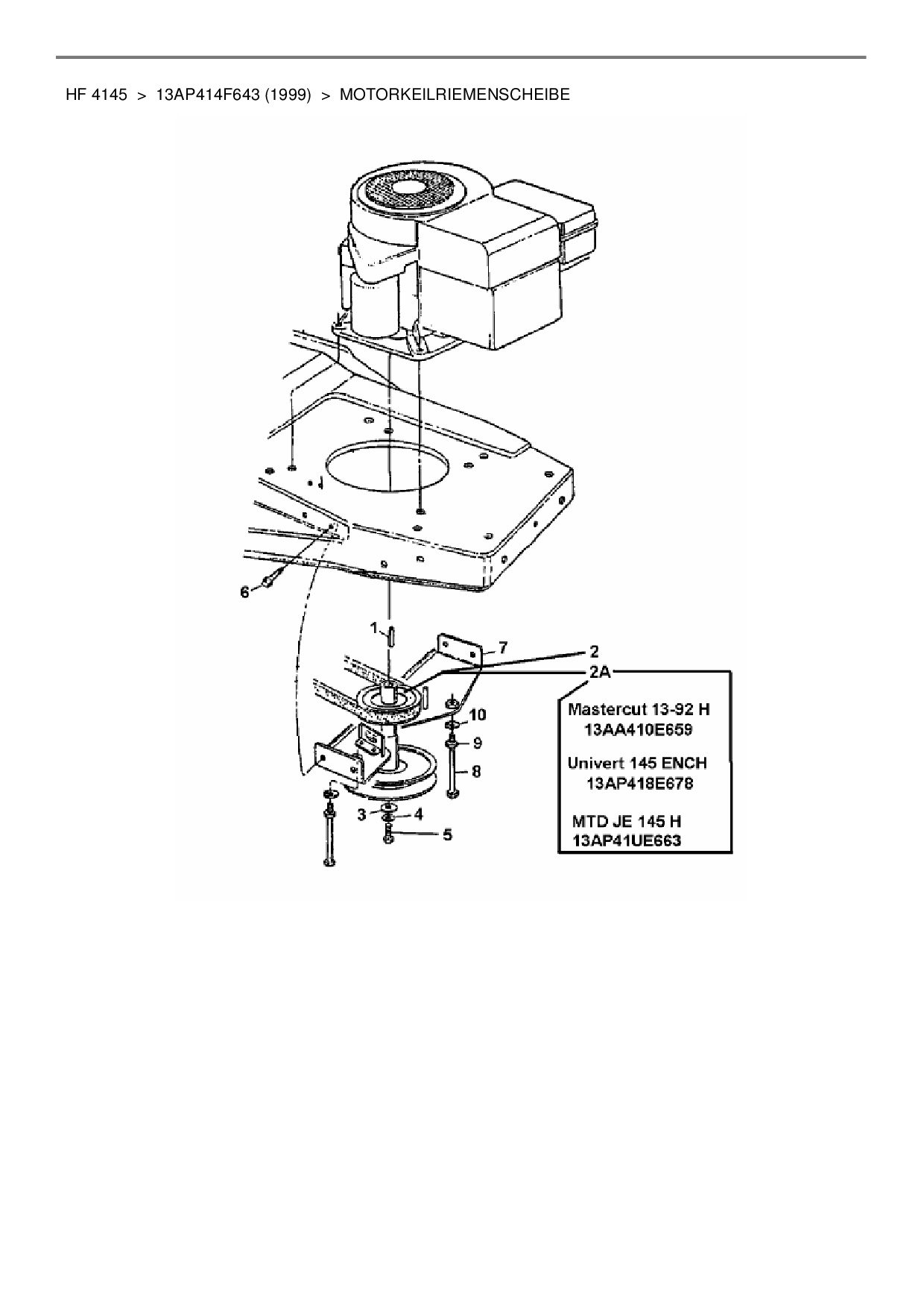 Ersatzteile für Rasentraktor Yard-Man HF 4145 aus der Zeichnung Motorkeilriemenscheibe: