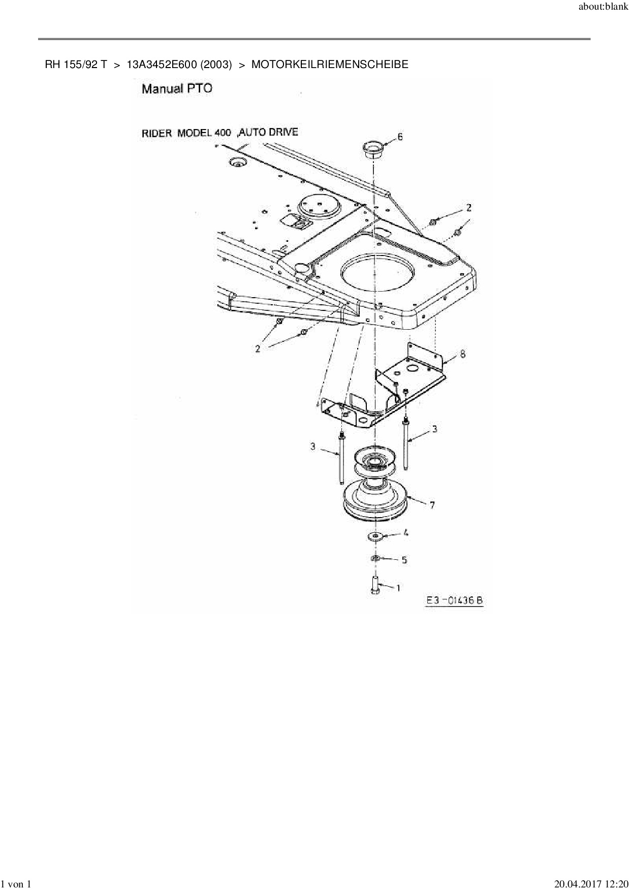Ersatzteile für Rasentraktor MTD RH 155/92 T aus der Zeichnung Motorkeilriemenscheibe: