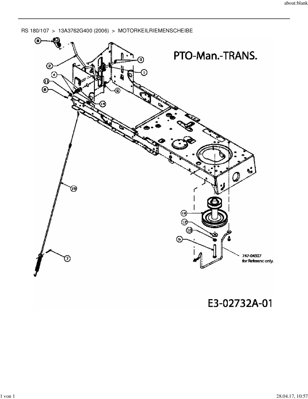Ersatzteile für Rasentraktor MTD RS 180/107 aus der Zeichnung Motorkeilriemenscheibe:
