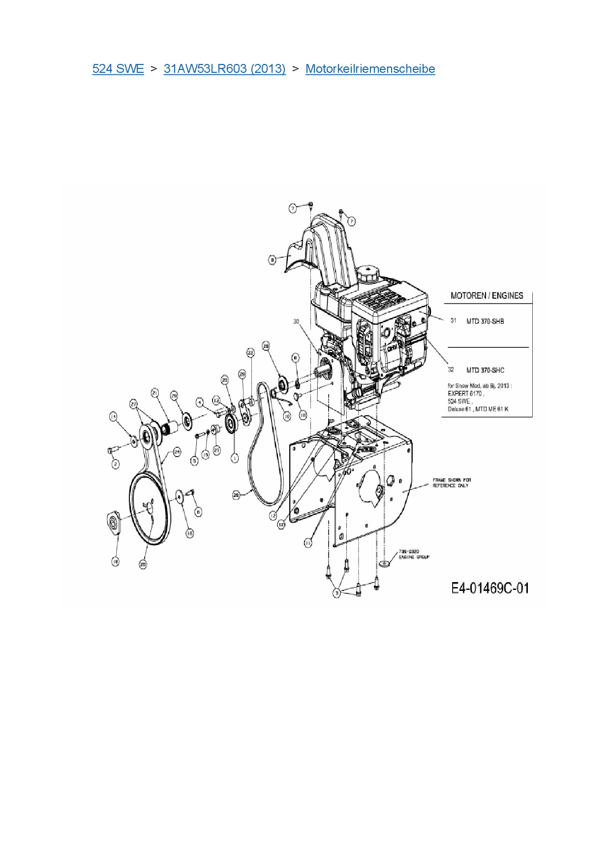 Ersatzteile für Schneefräse Cub Cadet 524 SWE aus der Zeichnung Motorkeilriemenscheibe: