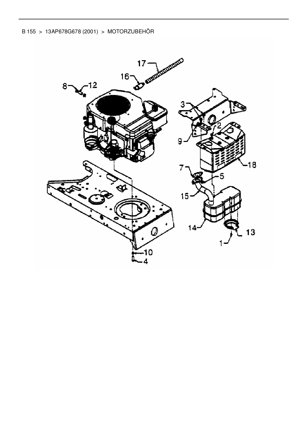 Ersatzteile für Rasentraktor MTD B 155 aus der Zeichnung Motorzubehör 1: