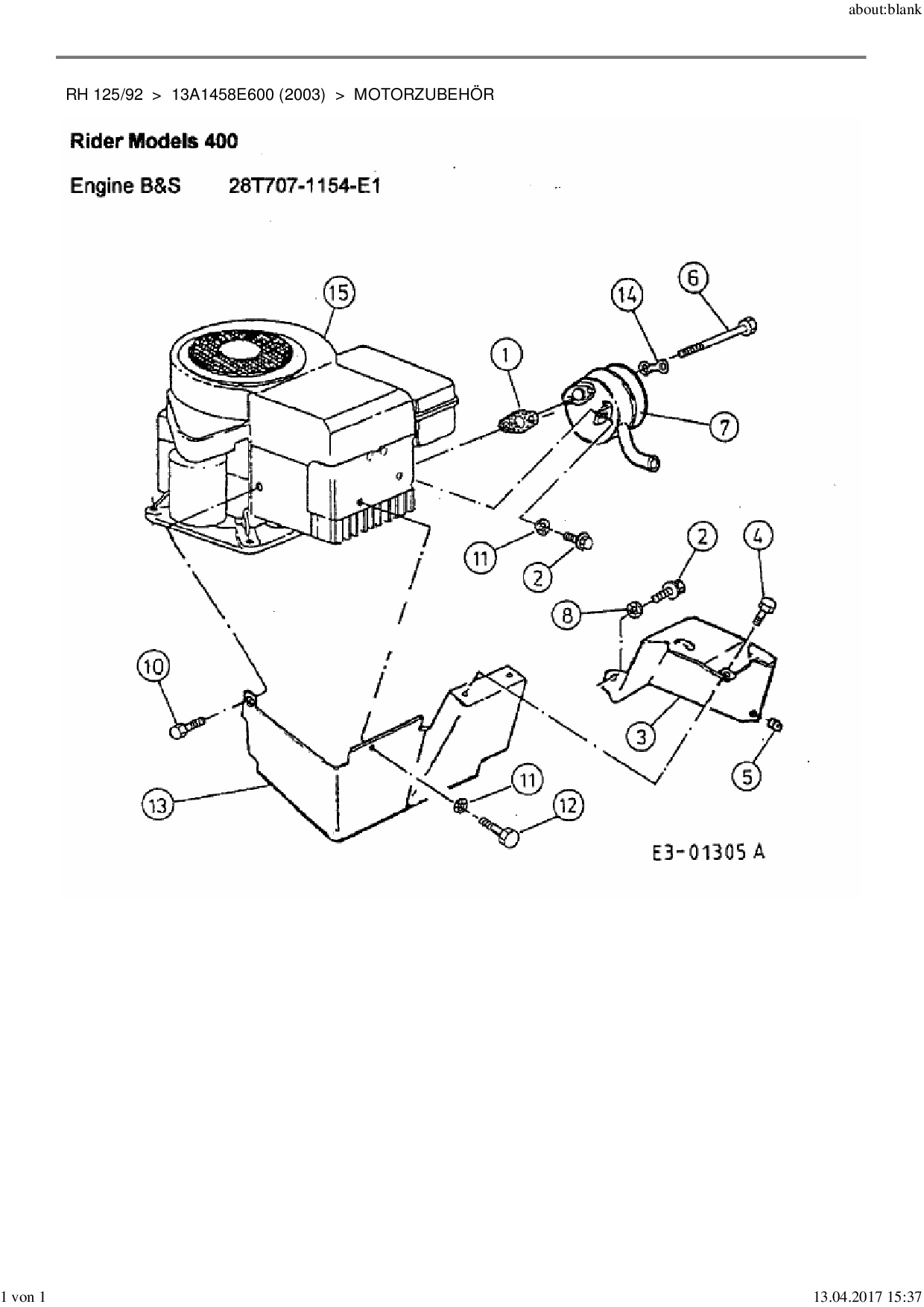 Ersatzteile für Rasentraktor MTD RH 125/92 aus der Zeichnung Motorzubehör 1: