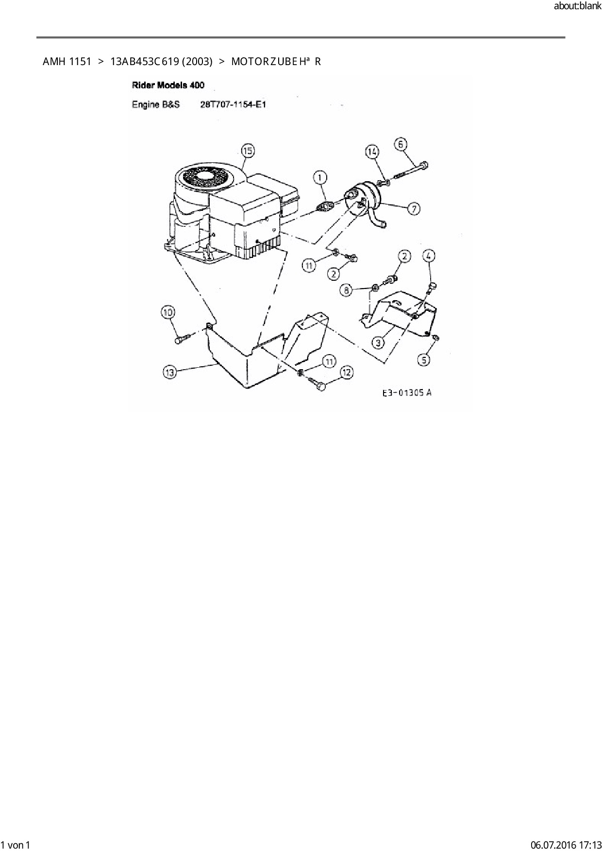 Zeichnung für FLEURELLE Rasentraktor AMH 1151 mit der Geräte-Artikelnr. 13AB453C619 ab Baujahr 2003: