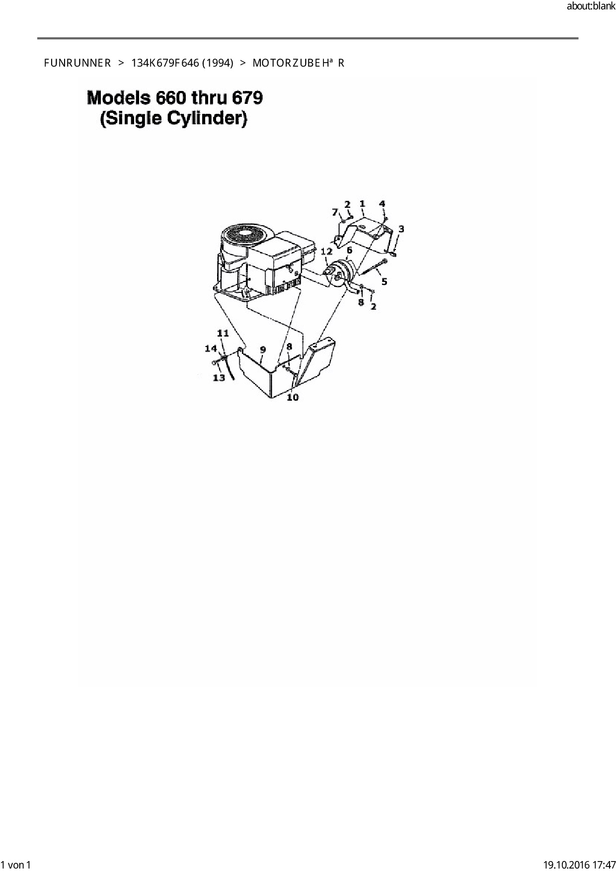 Ersatzteile für Rasentraktor Bauhaus Funrunner aus der Zeichnung Motorzubehör 1:
