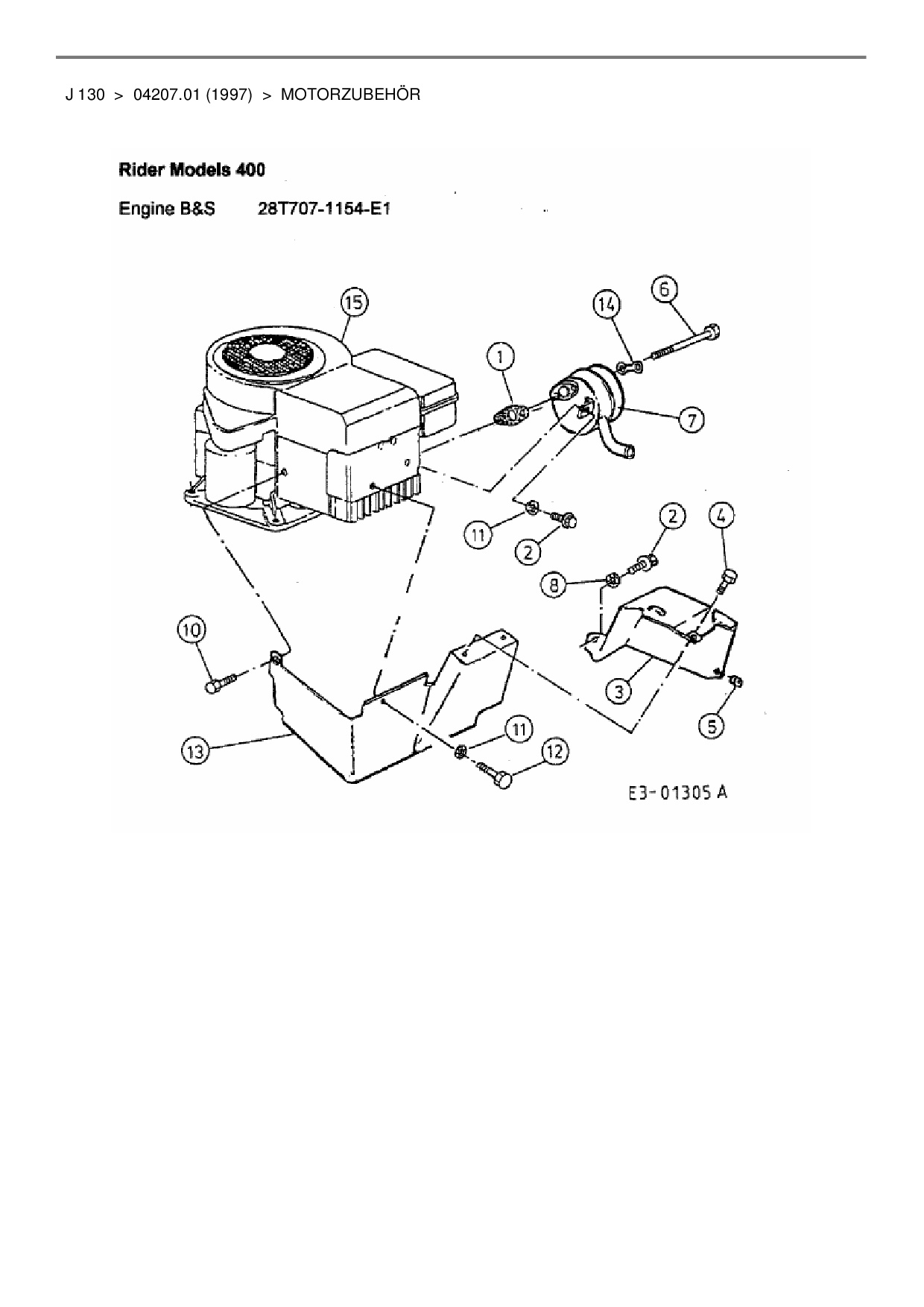 Ersatzteile für Rasentraktor MTD J 130 aus der Zeichnung Motorzubehör 2:
