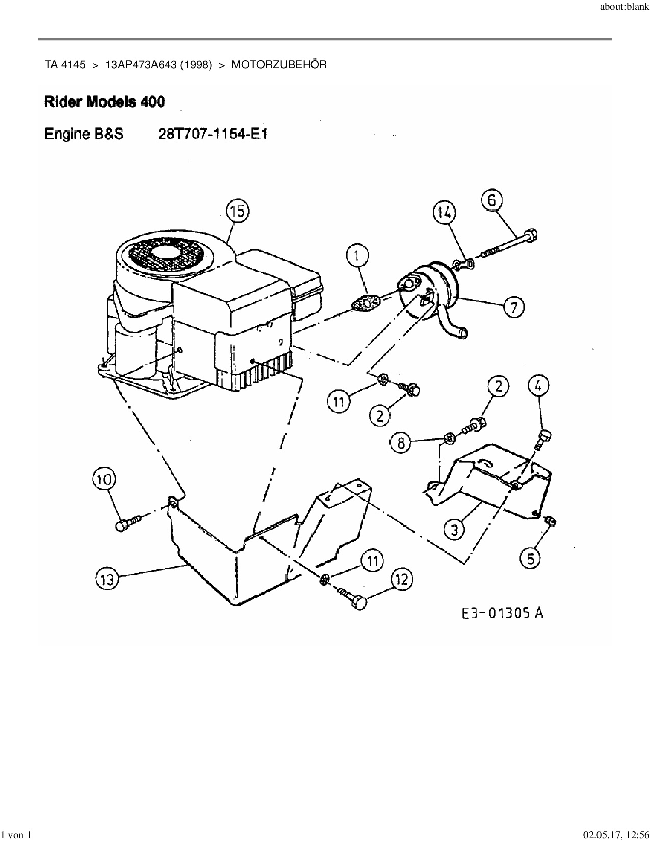 Ersatzteile für Rasentraktor Yard-Man TA 4145 aus der Zeichnung Motorzubehör Rider Models 400: