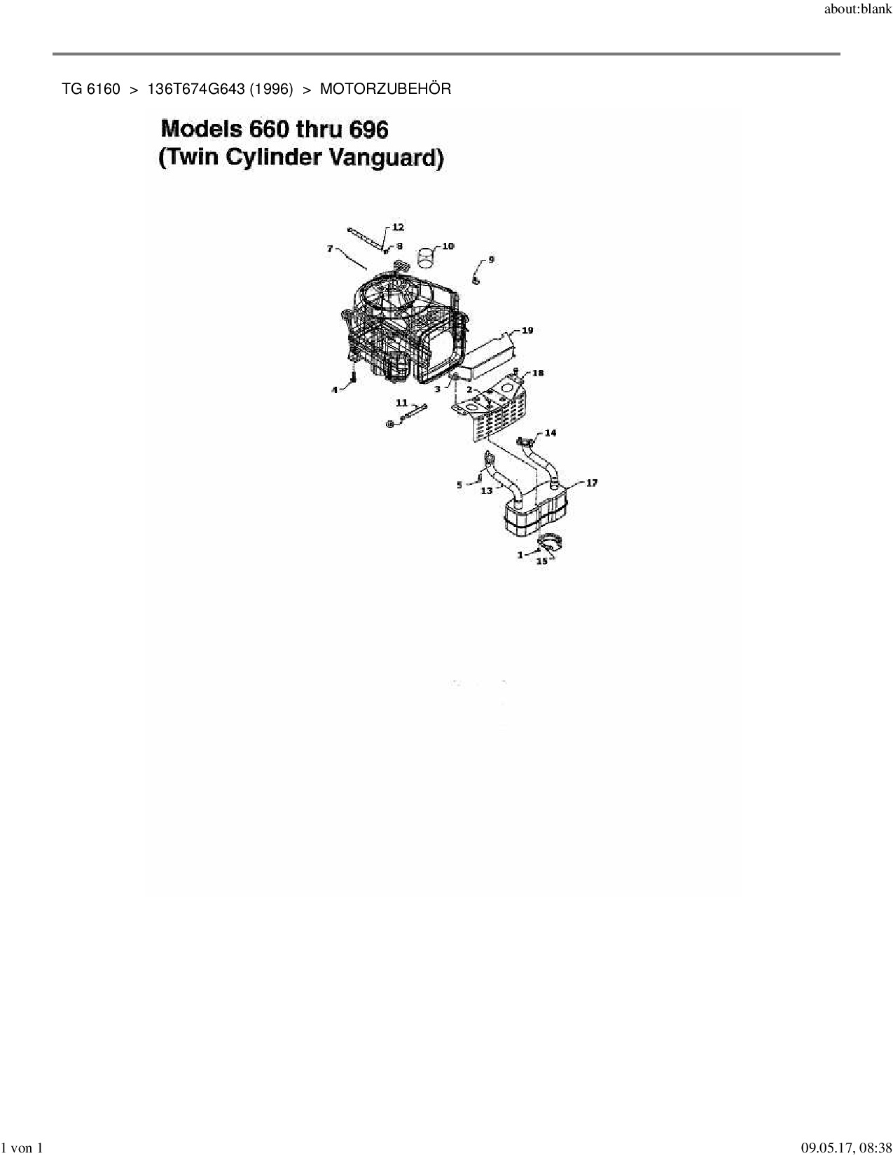 Ersatzteile für Rasentraktor Yard-Man TG 6160 aus der Zeichnung Motorzubehör Twin Cylinder Vanguard: