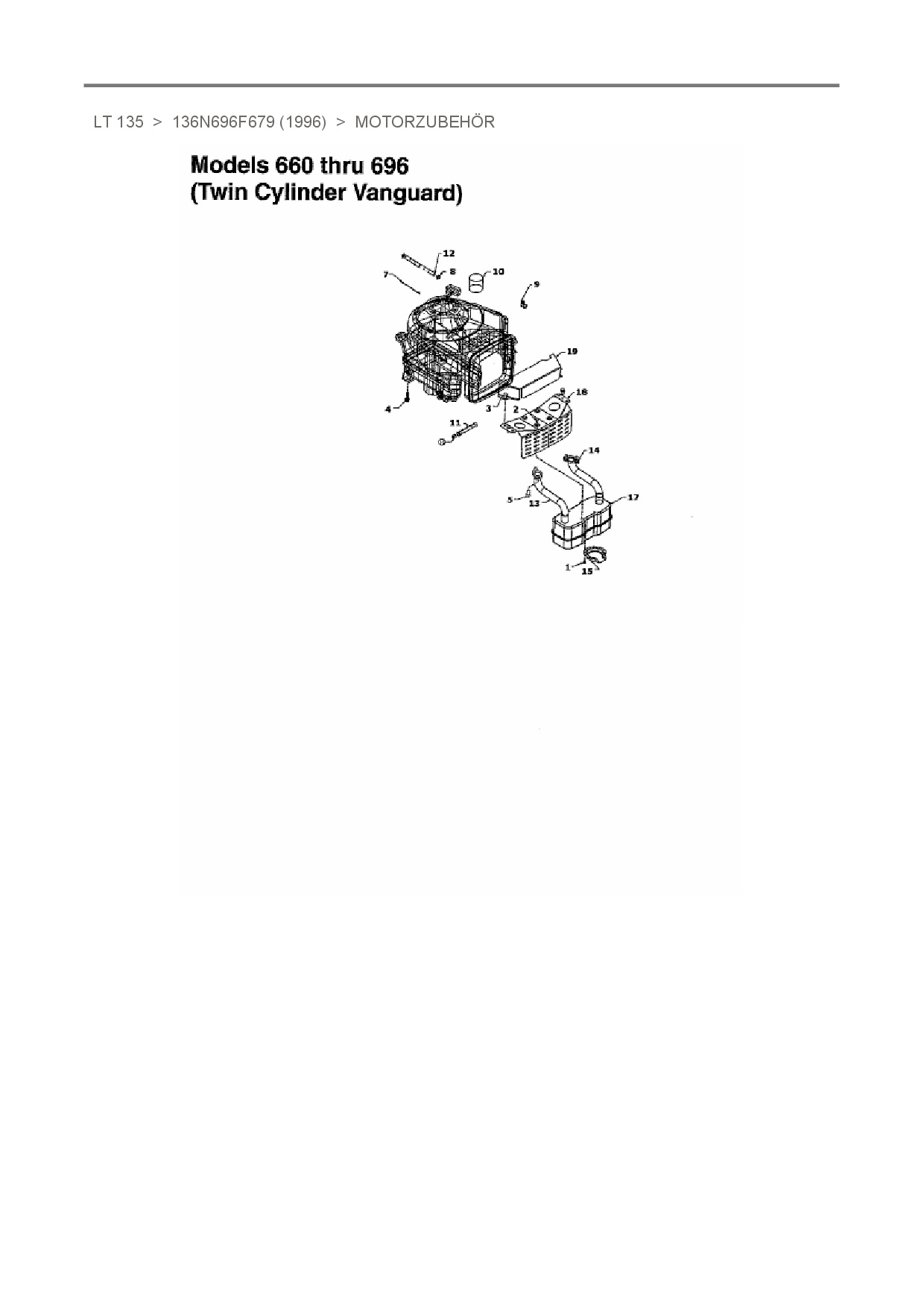 Ersatzteile für Rasentraktor White LT 135 aus der Zeichnung Motorzubehör Twin Cylinder Vanguard:
