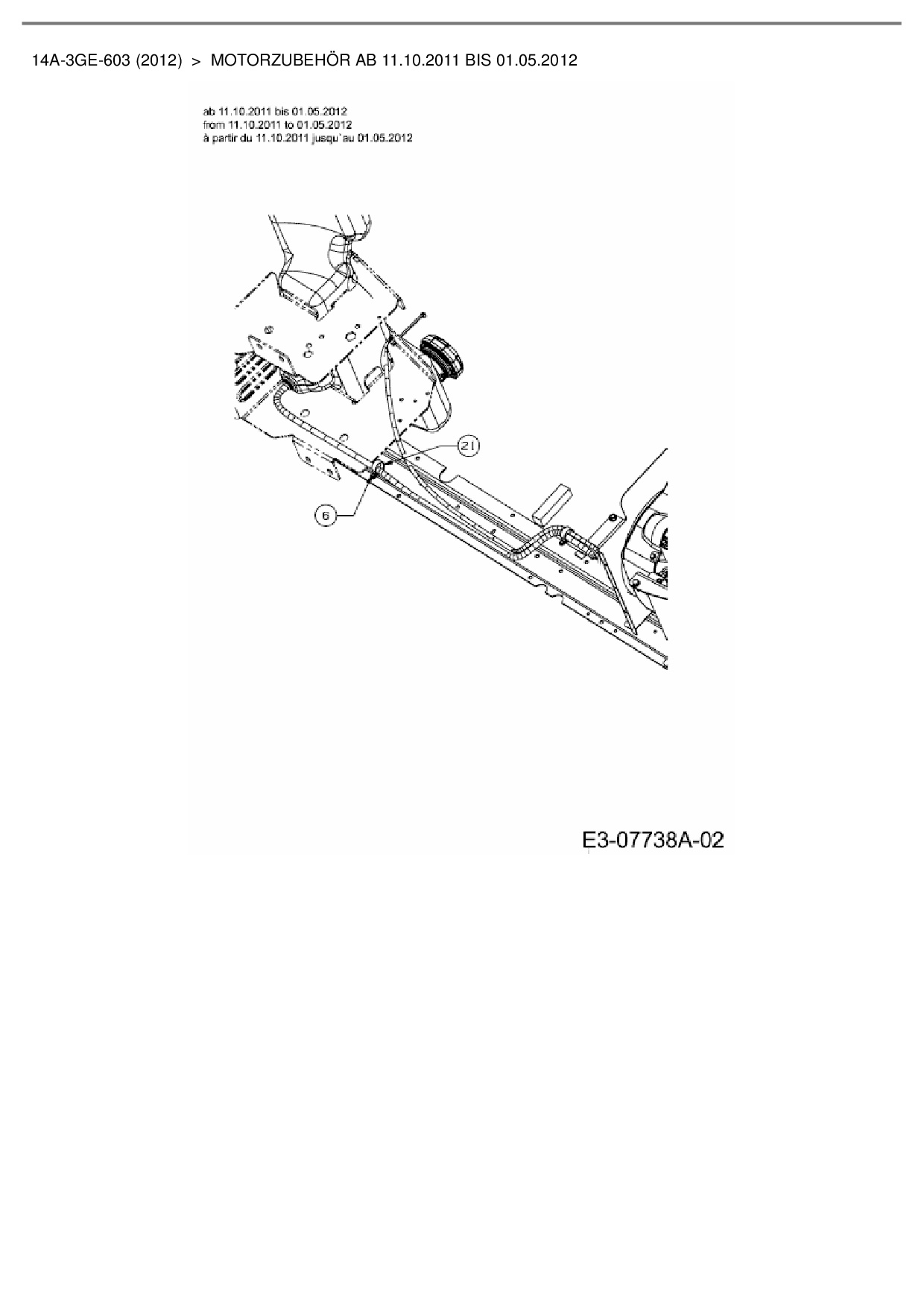 Ersatzteile für Gartentraktor Cub Cadet GTX 2100 aus der Zeichnung Motorzubehör ab 11.10.2011 bis 01.05.2012: