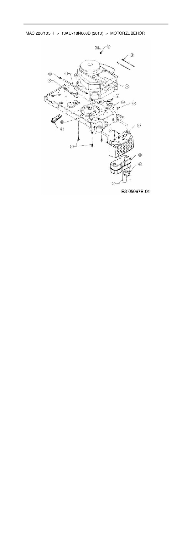 Ersatzteile für Rasentraktor Mac Allister Mac 220/105 H aus der Zeichnung Motorzubehör: