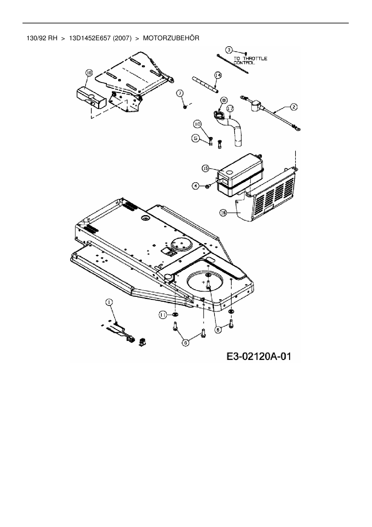 Zeichnung für Mastercut Rasentraktor 130/92 RH mit der Geräte-Artikelnr. 13D1452E657 ab Baujahr 2007: