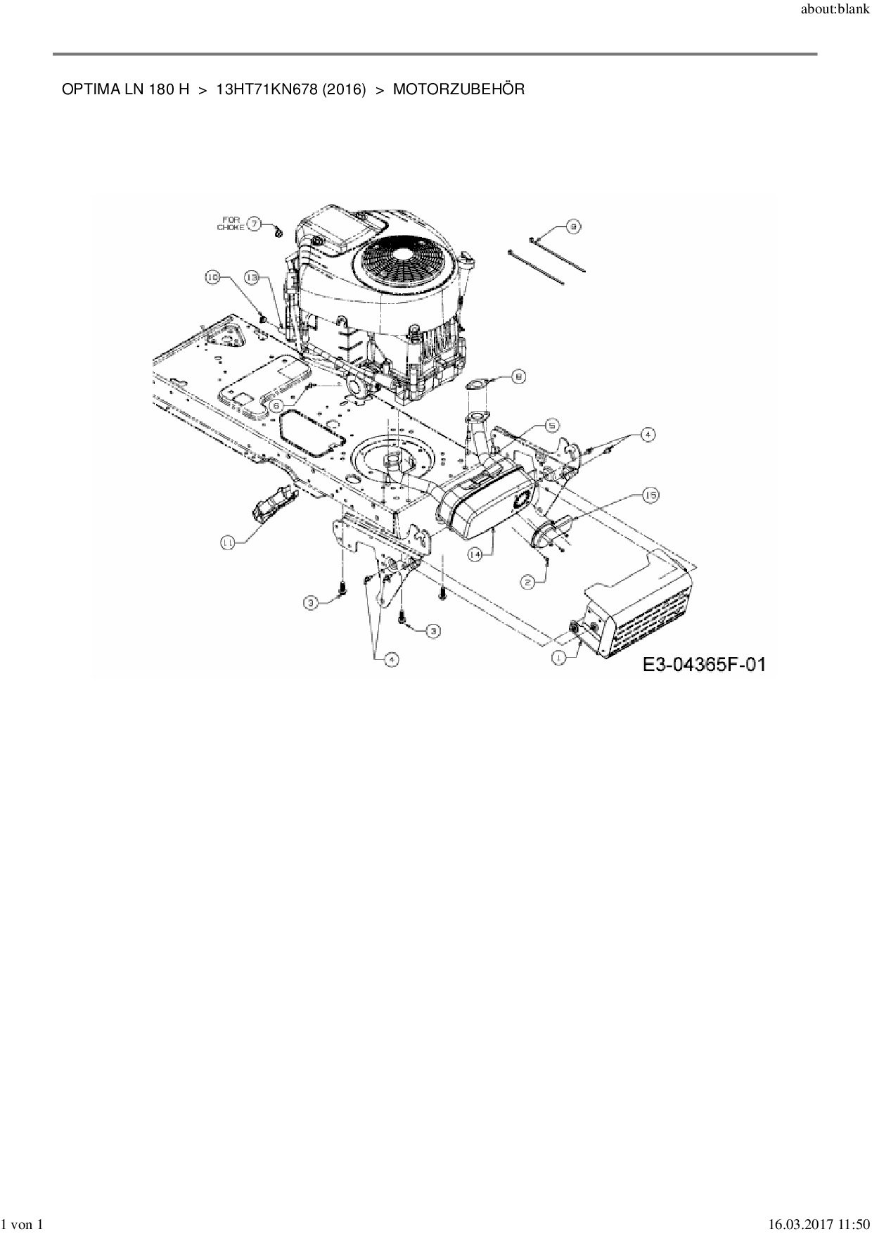 Ersatzteile für Rasentraktor MTD Optima LN 180 H aus der Zeichnung Motorzubehör: