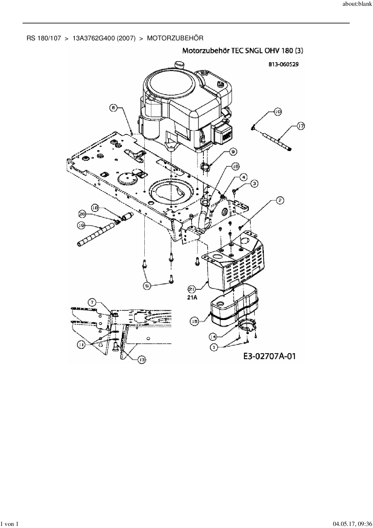 Ersatzteile für Rasentraktor MTD RS 180/107 aus der Zeichnung Motorzubehör: