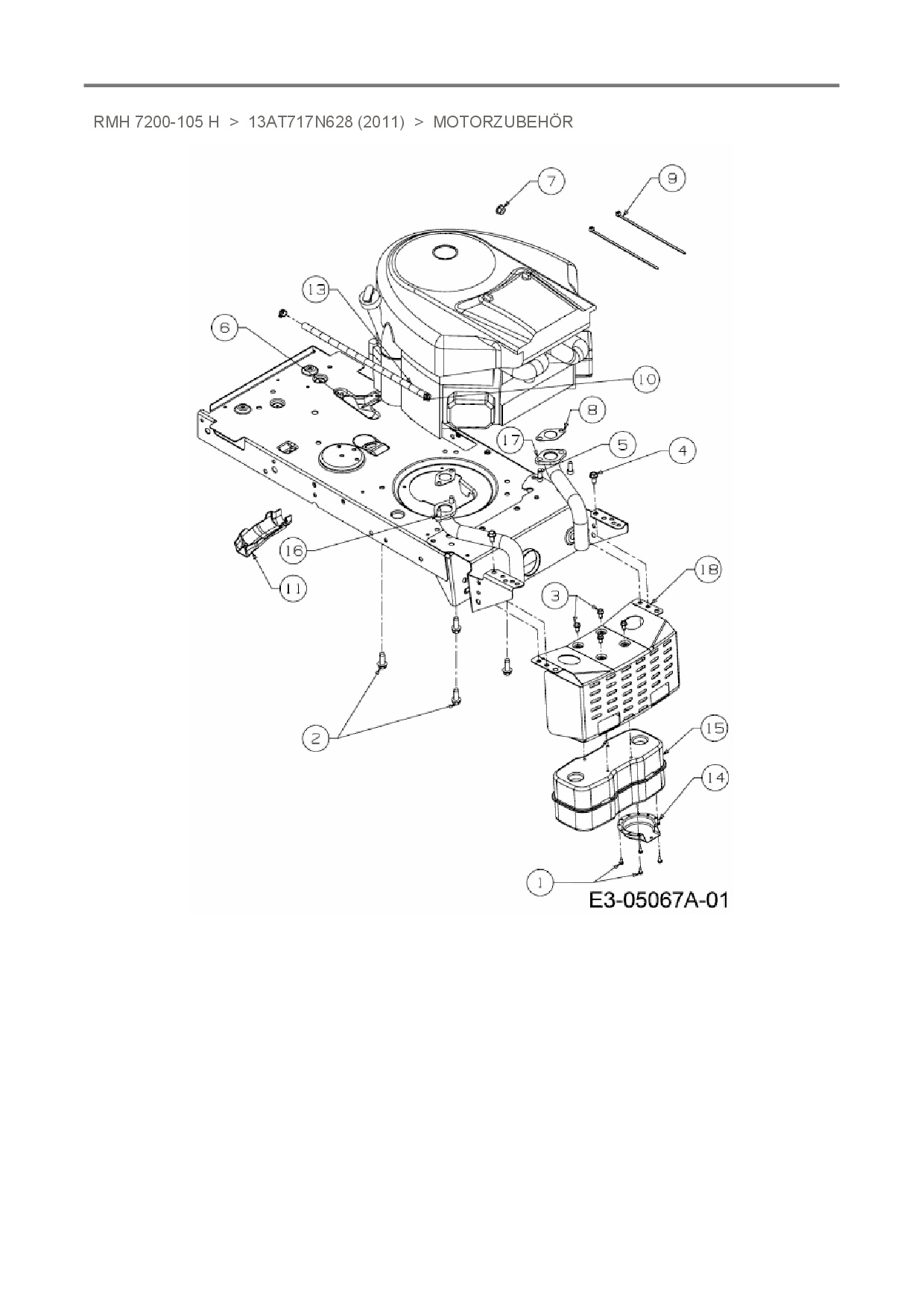 Ersatzteile für Rasentraktor Raiffeisen RMH 7200-105 H aus der Zeichnung Motorzubehör: