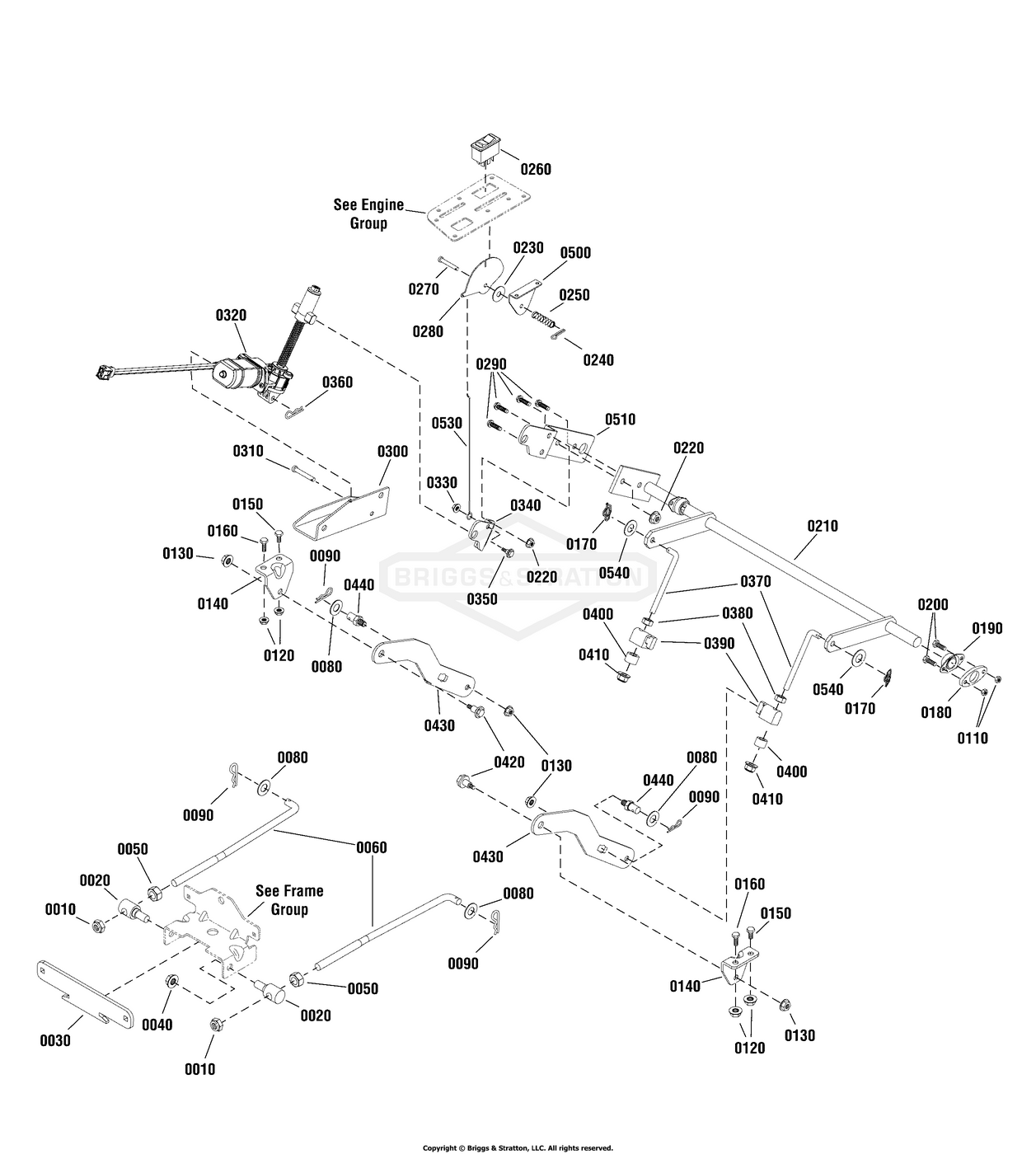 Zeichnung Snapper 2691165-00 - ZT2346, 46" 23 HP ZT Twin Stick Rider 200Z Series - Zeichnungsgruppe Mower Deck - Deck Lift Group, EHOC, Frame Hung: