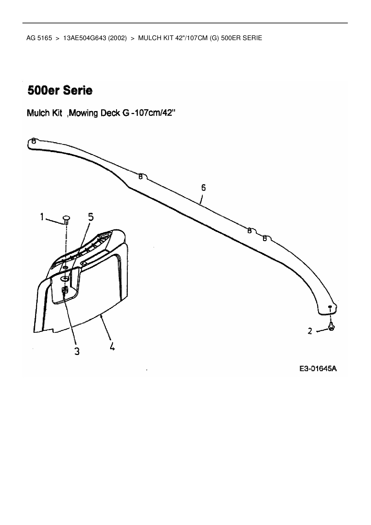 Ersatzteile für Rasentraktor Yard-Man AG 5165 aus der Zeichnung Mulch Kit 42"/107cm (G) 500er Serie:
