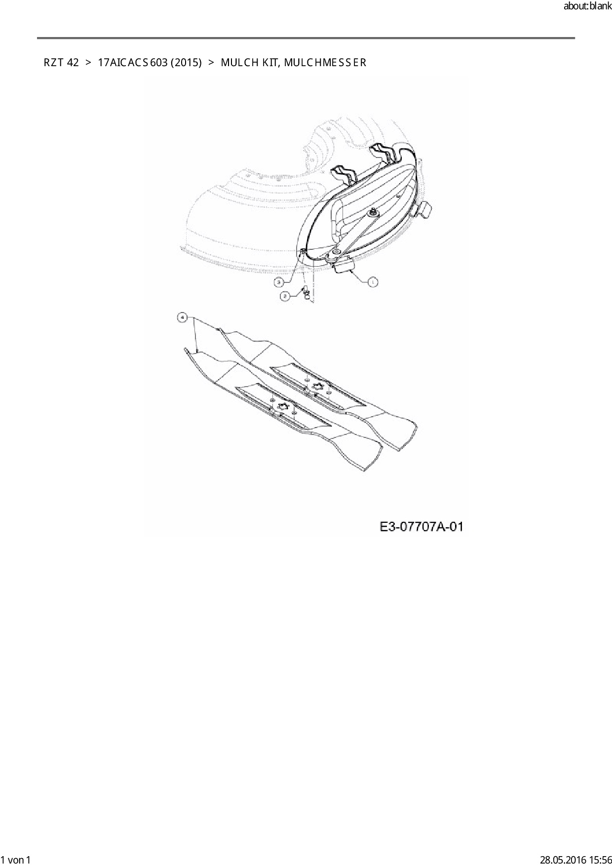 Ersatzteile für Zero Turn Cub Cadet RZT 42 aus der Zeichnung Mulch Kit, Mulchmesser: