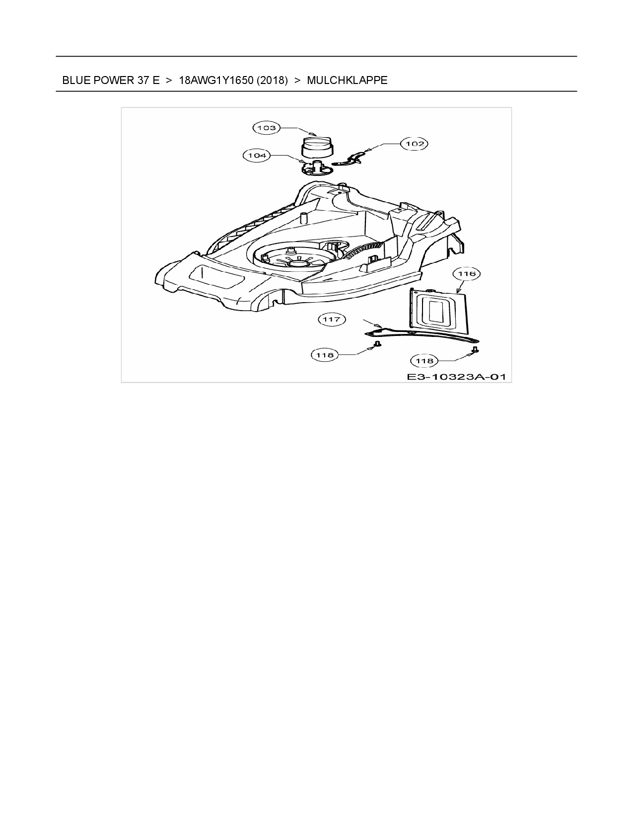 Ersatzteile für Elektromäher Wolf-Garten Blue Power 37 E aus der Zeichnung Mulchklappe: