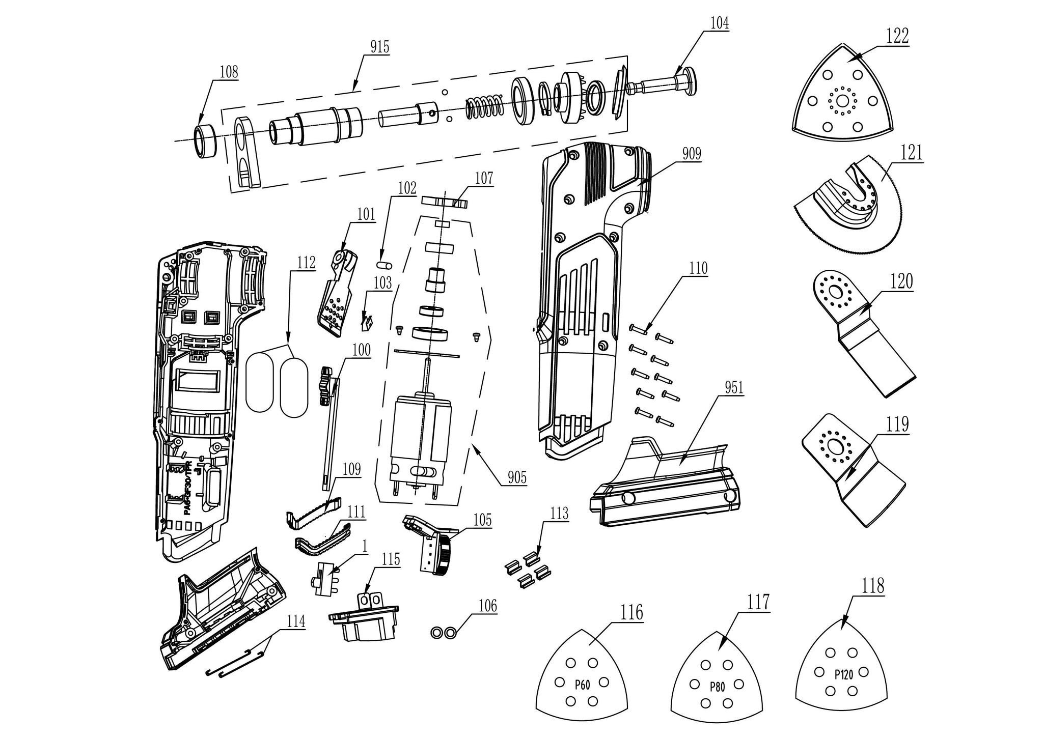 Folgende Ersatzteile für Einhell Expert Multifunktionswerkzeug TE-MG 18/1 Li - Solo ( 4465195 ) können Sie hier bestellen: