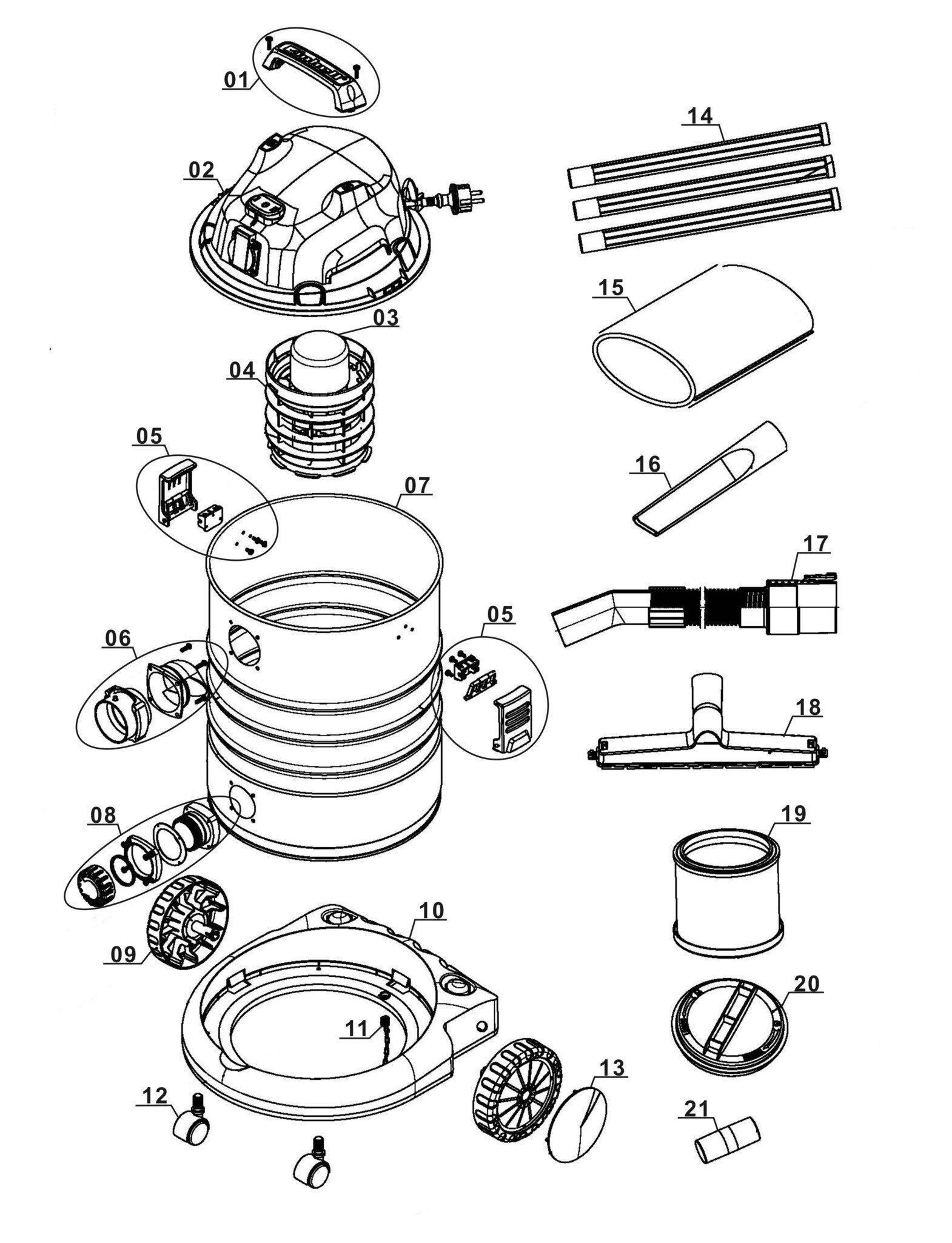 Ersatzteile für Yellow Profi Line Nass- / Trockensauger YPL N.G. 1400, EX, AT ( 2342192 )