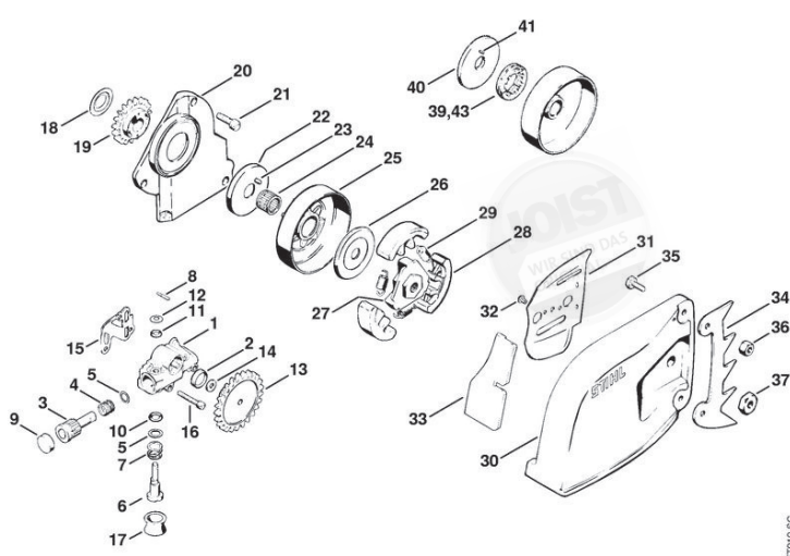 Hier finden Sie alle Ersatzteile von Stihl Benzin-Motorsägen 032 AVEQW der Zeichnungsgruppe Ölpumpe, Kupplung, Kettenraddeckel: