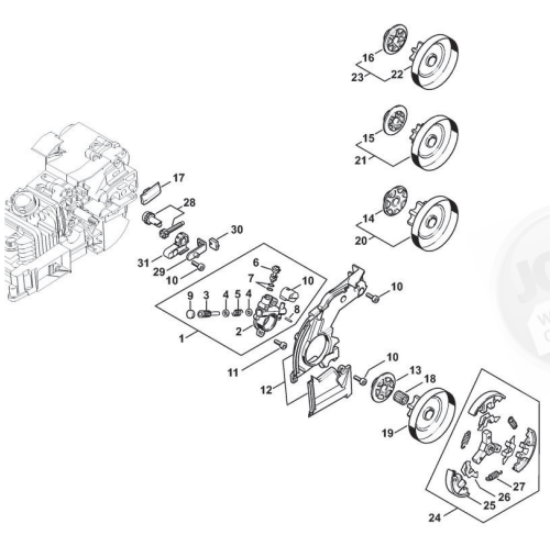 Hier finden Sie alle Ersatzteile von Stihl Benzin-Motorsägen MS 200 der Zeichnungsgruppe Ölpumpe, Kupplung: