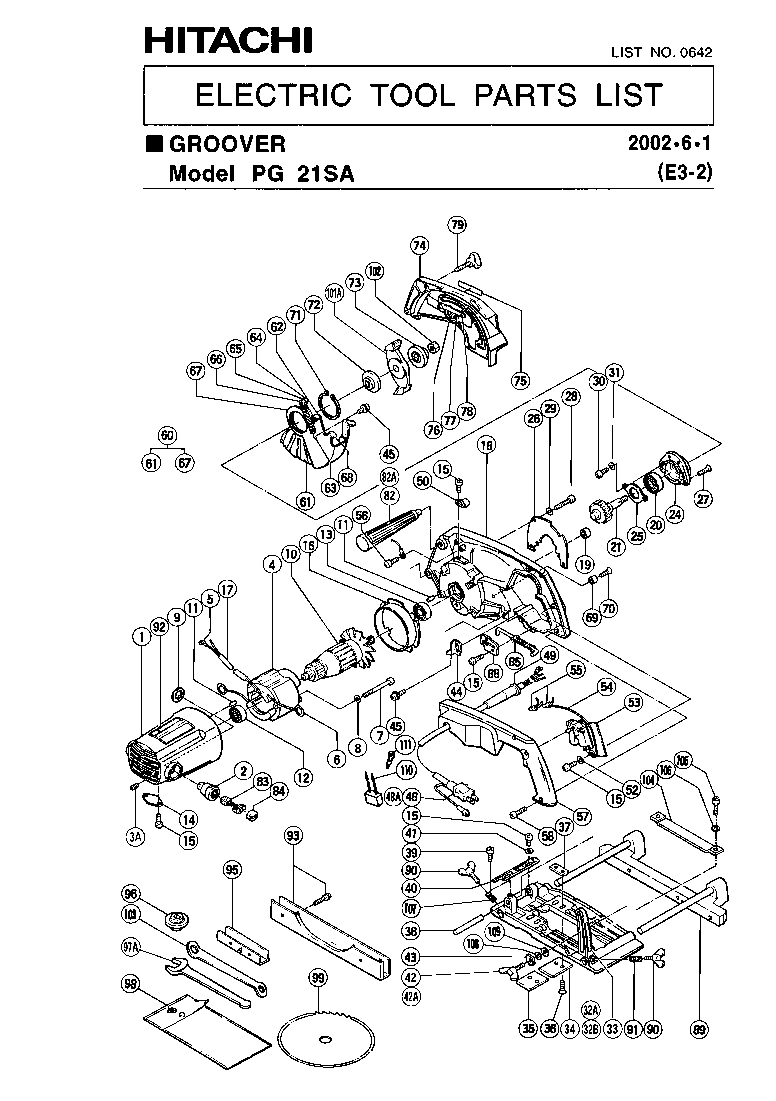 Zeichnung Sollten Sie Fragen zu einem Ersatzteil vom Hikoki (Hitachi) PG21SA - Nutfräser haben, können Sie uns gerne eine E-Mail (mit einem Foto vom Typenschild Ihres Gerätes) schreiben oder eine Ersatzteilanfrage stellen.