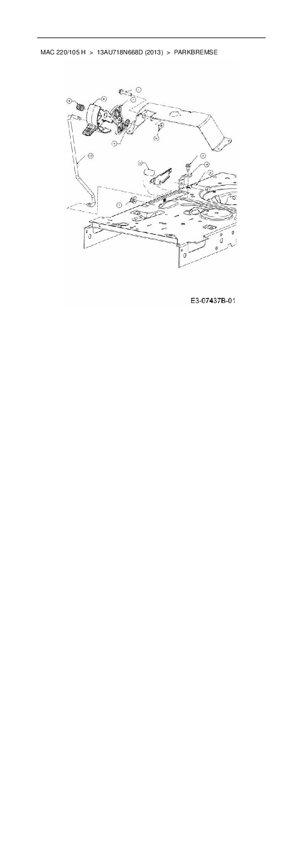 Ersatzteile für Rasentraktor Mac Allister Mac 220/105 H aus der Zeichnung Parkbremse: