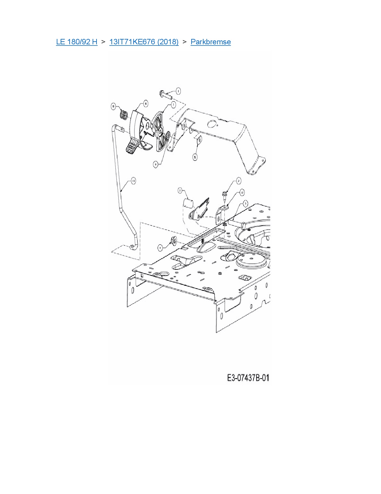 Ersatzteile für Rasentraktor MTD LE 180/92 H aus der Zeichnung Parkbremse: