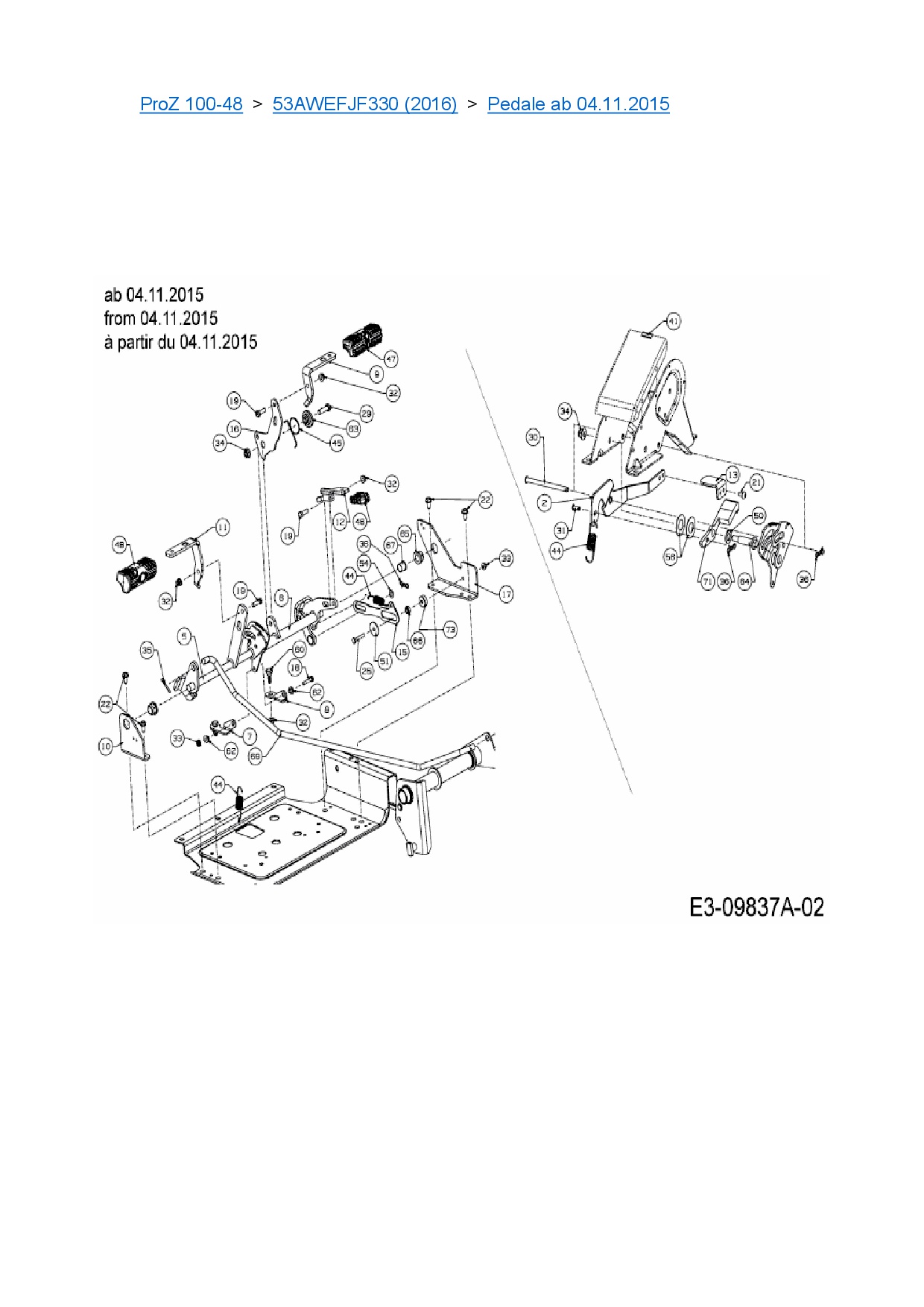 Ersatzteile für Zero Turn Cub Cadet ProZ 100-48 aus der Zeichnung Pedale ab 04.11.2015: