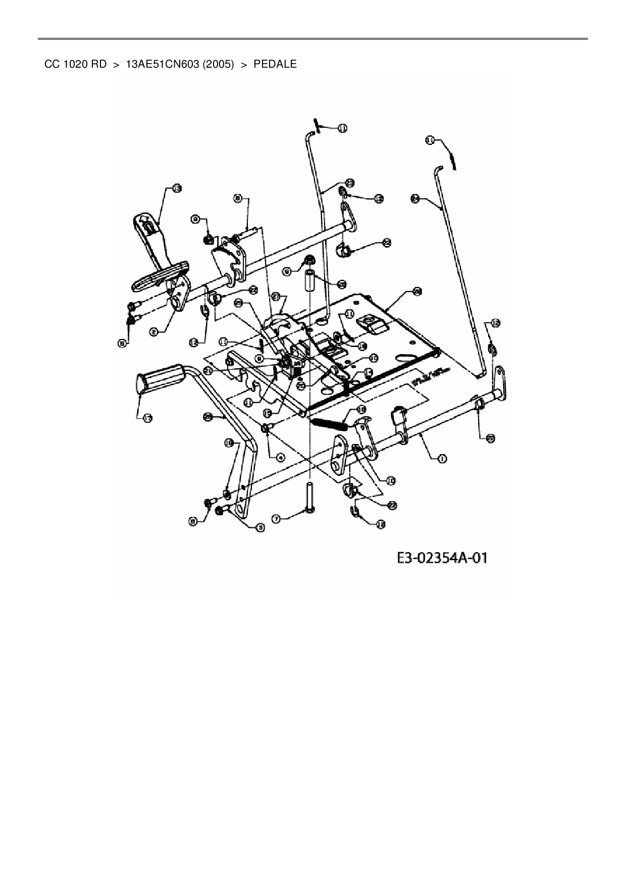 Ersatzteile für Rasentraktor Cub Cadet CC 1020 RD aus der Zeichnung Pedale: