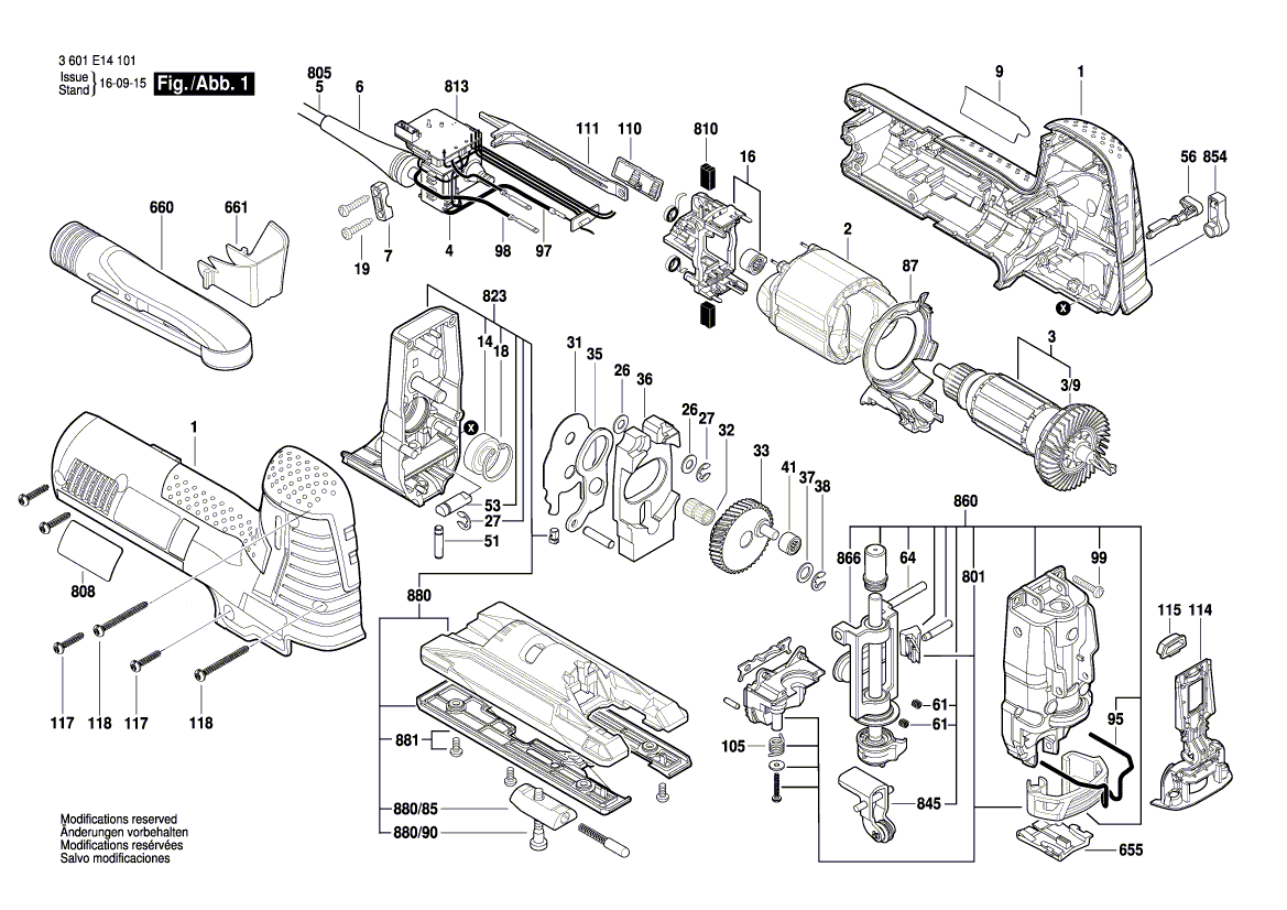 Zeichnungen von Bosch Pendelstichsäge GST 1400 CE mit der Geräte-Artikelnummer 3 601 E14 101