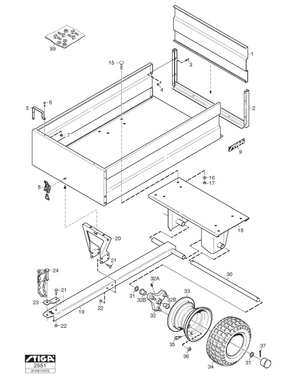 Zeichnungen von Stiga Frontaufsitzmäher PRO CART GALVANIZED mit Geräte Nr. 13-3906-11 ab Baujahr 2013