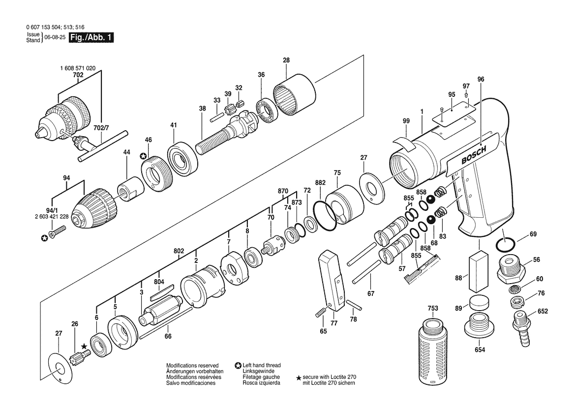 Ersatzteile für Bosch Pw-Bohrmaschine-Ind 180 WATT-SERIE (0 607 153 516)