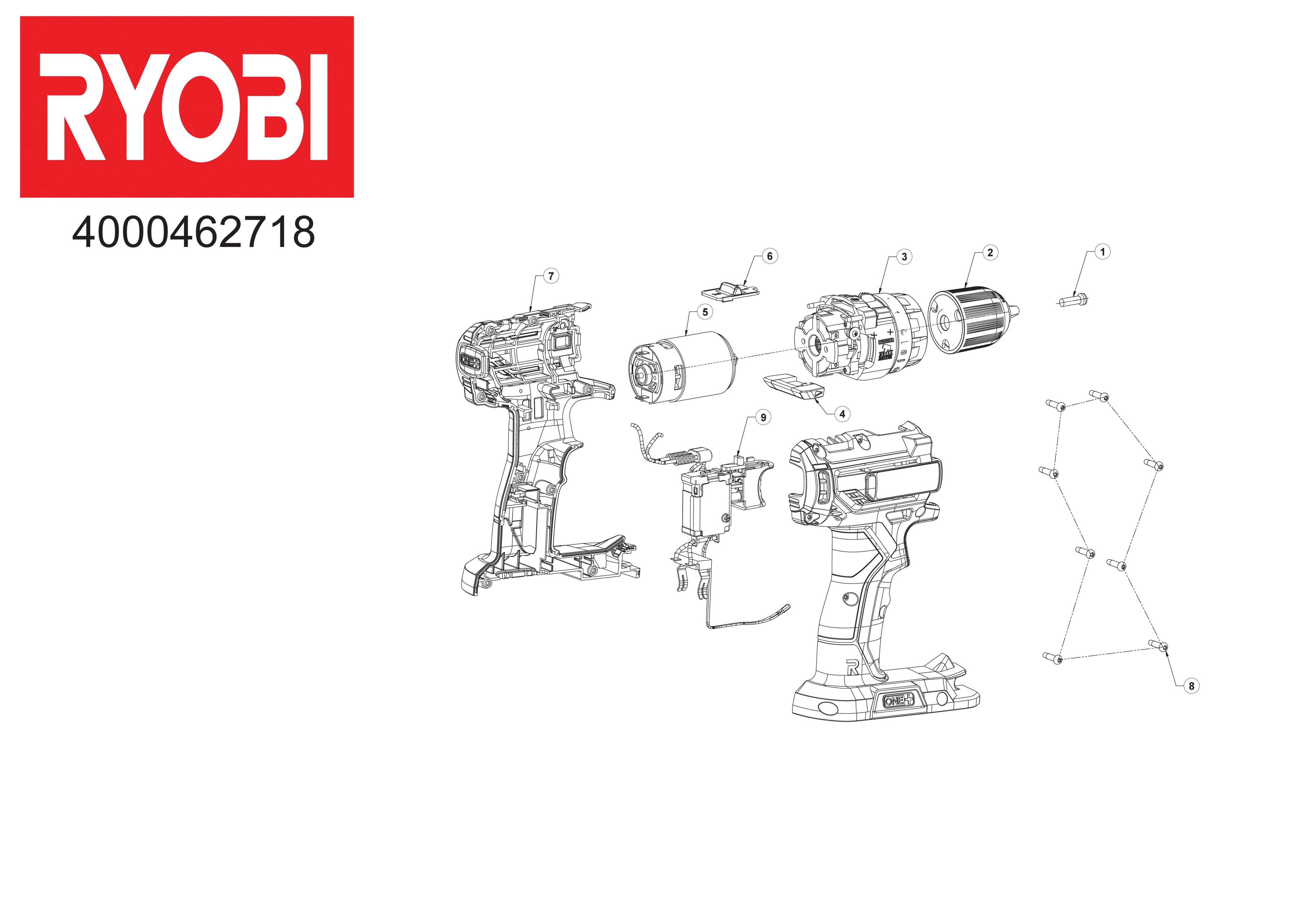 Folgende Ersatzteile für Ryobi R18PD2-113S - Bohrschrauber, Schlagbohrschrauber 4 XX96 4000462718 5133003825 können Sie hier bestellen: