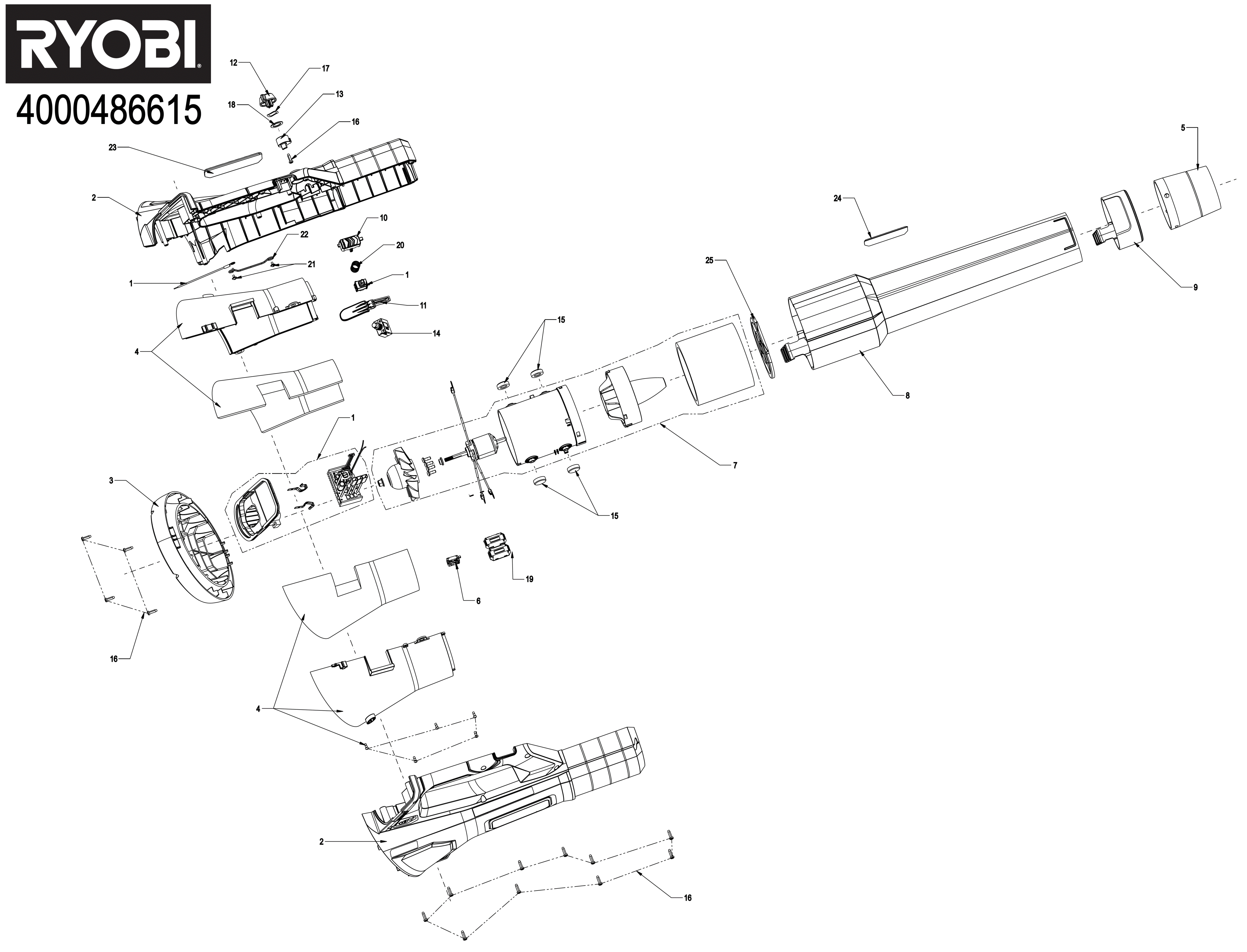 Ersatzteile für Ryobi RY18BLXD-150 - Vacuums Blowers XX96 4000486615 5133005952