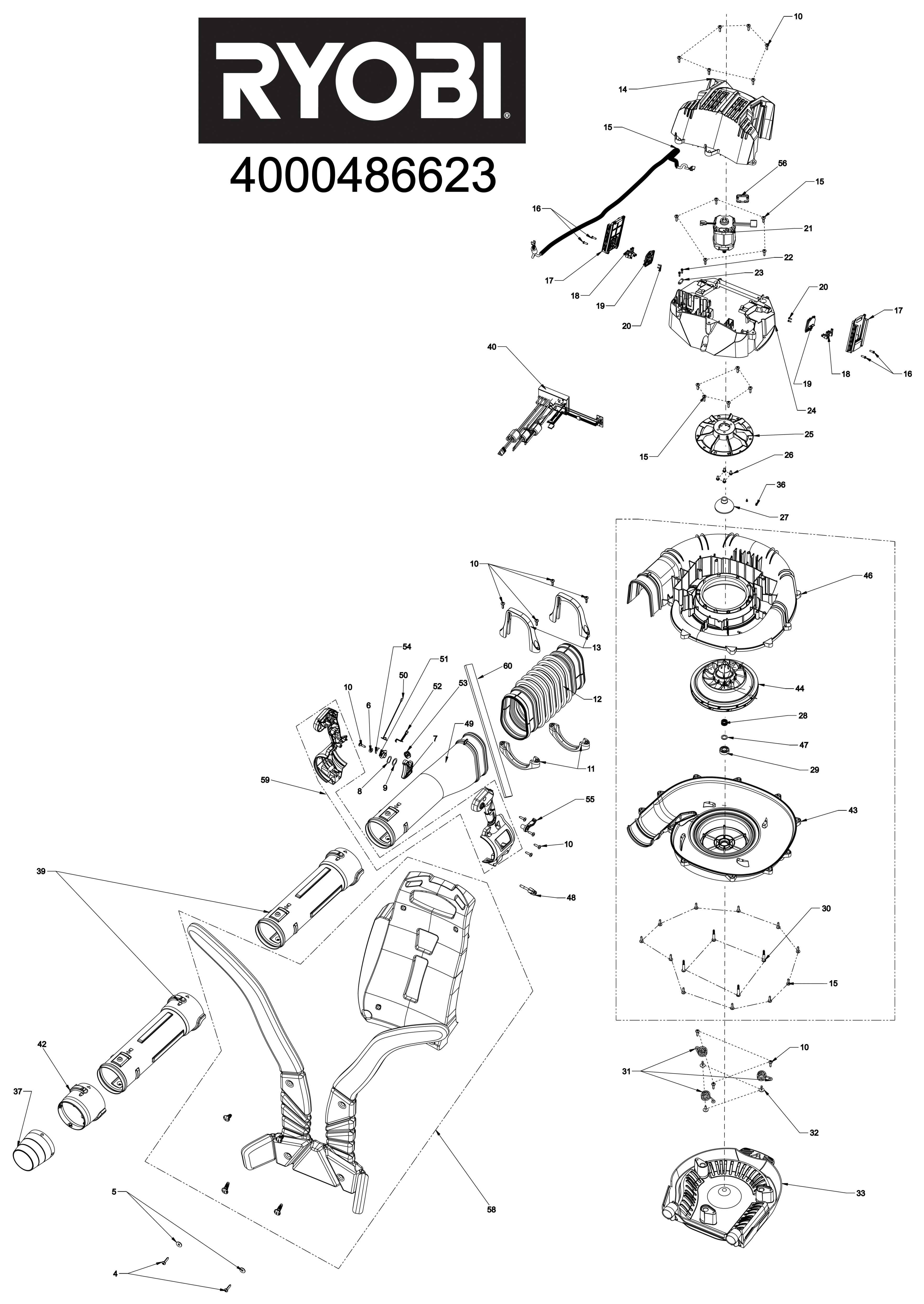 Ersatzteile für Ryobi RY36BPXB-0 - Vacuums Blowers XX96 4000486623 5133005947