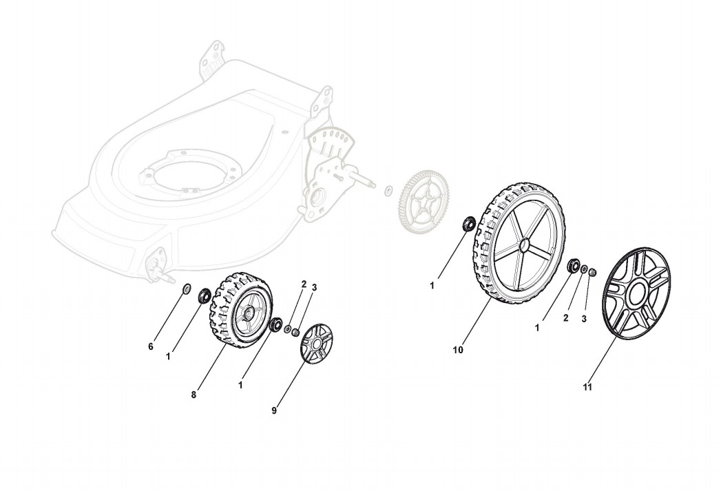 Hier finden Sie alle Ersatzteile von Castelgarden Benzinrasenmäher ab 2008 TDL 484 W TR - G (ID 294487047/08) aus der Zeichnung Rad und Radkappe: