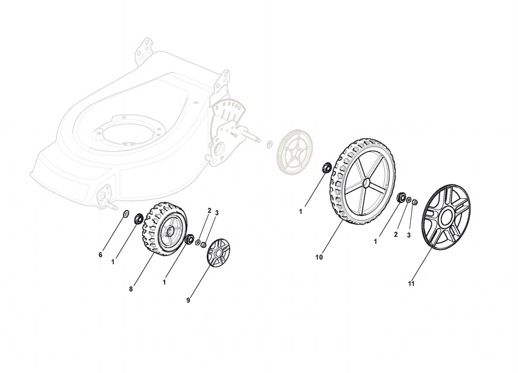 Hier finden Sie alle Ersatzteile von Castelgarden Benzinrasenmäher ab 2008 TDL 534 TRHG/R+M (ID 294537033/F8) aus der Zeichnung Rad und Radkappe: