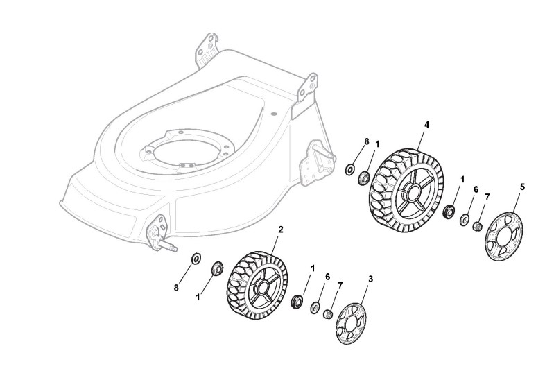 Hier finden Sie alle Ersatzteile von Castelgarden Benzinrasenmäher ab 2008 XS 50 MBS (ID 291485823/SP6) aus der Zeichnung Rad und Radkappe: