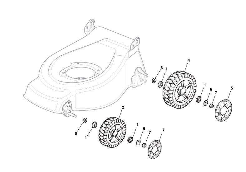 Hier finden Sie alle Ersatzteile von Castelgarden Benzinrasenmäher ab 2008 XS 55 MBS 4 (ID 291536123/FCK) aus der Zeichnung Rad und Radkappe: