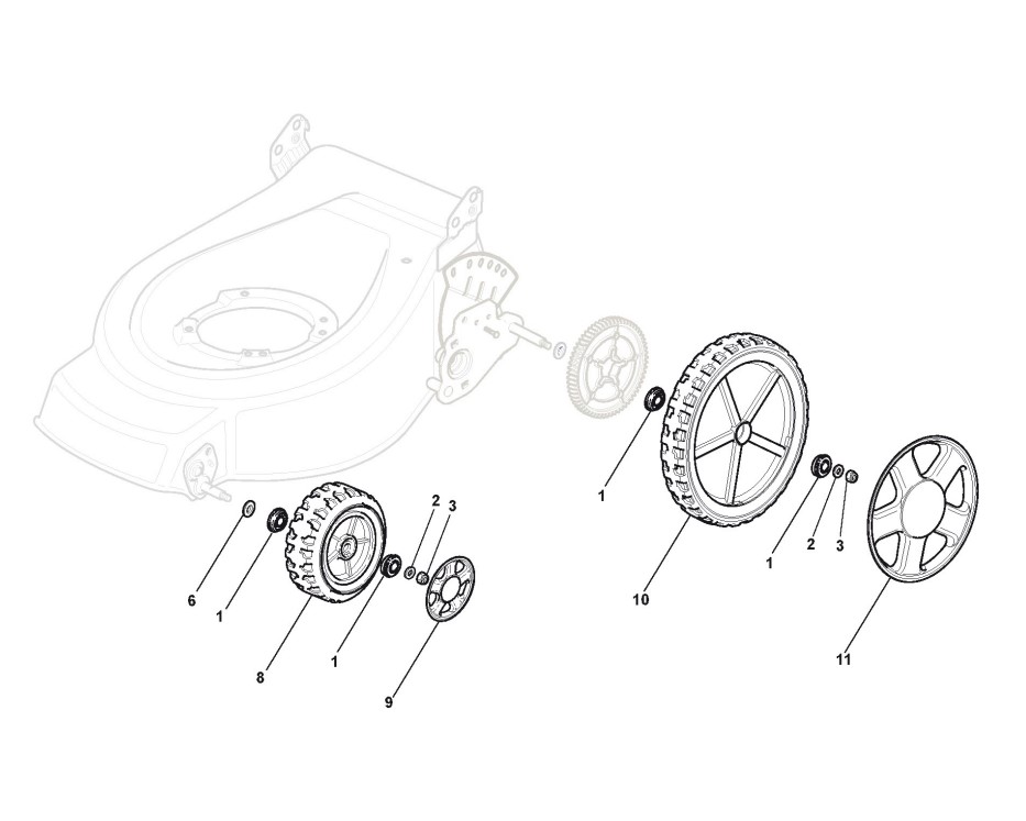 Hier finden Sie alle Ersatzteile von Castelgarden Benzinrasenmäher ab 2008 XSW 55 MBS (ID 291537023/08) aus der Zeichnung Rad und Radkappe: