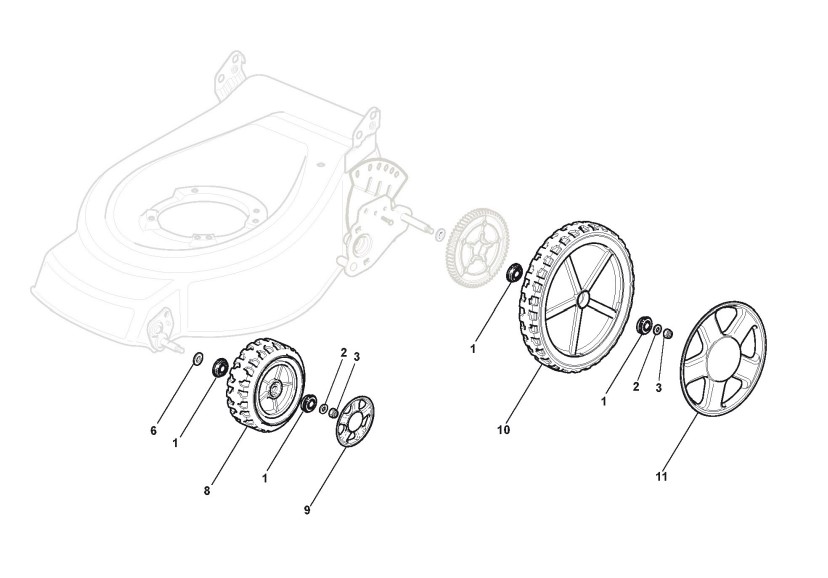 Hier finden Sie alle Ersatzteile von Castelgarden Benzinrasenmäher ab 2008 XSW 55 MBS (ID 291537023/FCK) aus der Zeichnung Rad und Radkappe: