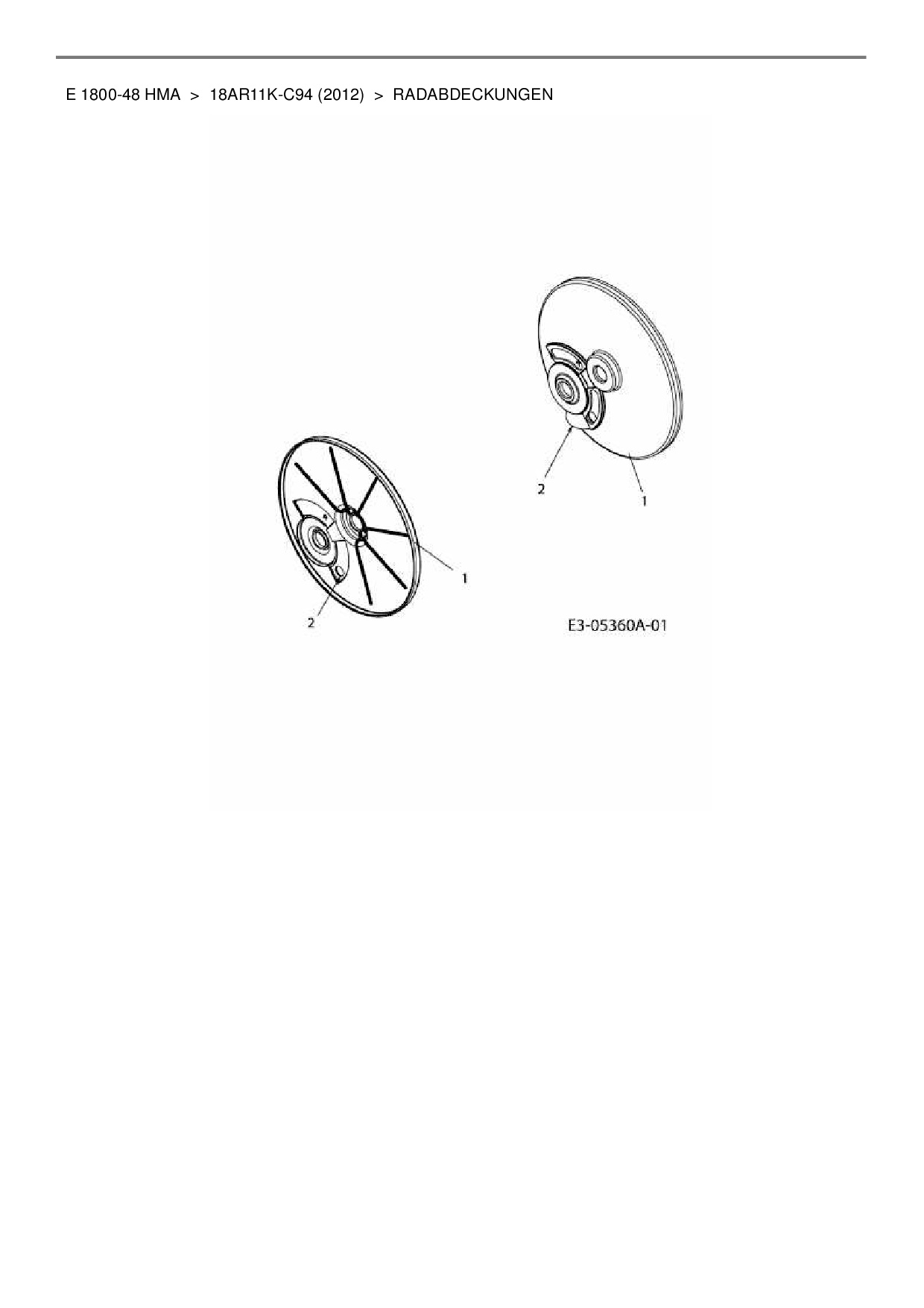 Ersatzteile für Elektromäher mit Antrieb Lux Tools E 1800-48 HMA aus der Zeichnung Radabdeckungen: