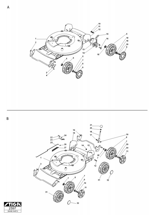 Hier finden Sie alle Ersatzteile von Stiga Benzin-Rasenmäher ab 2009 Multiclip 50 S (Geräte Nr 291502044/ST9) aus dem Zeichnungsblatt Radaufhängung (2):