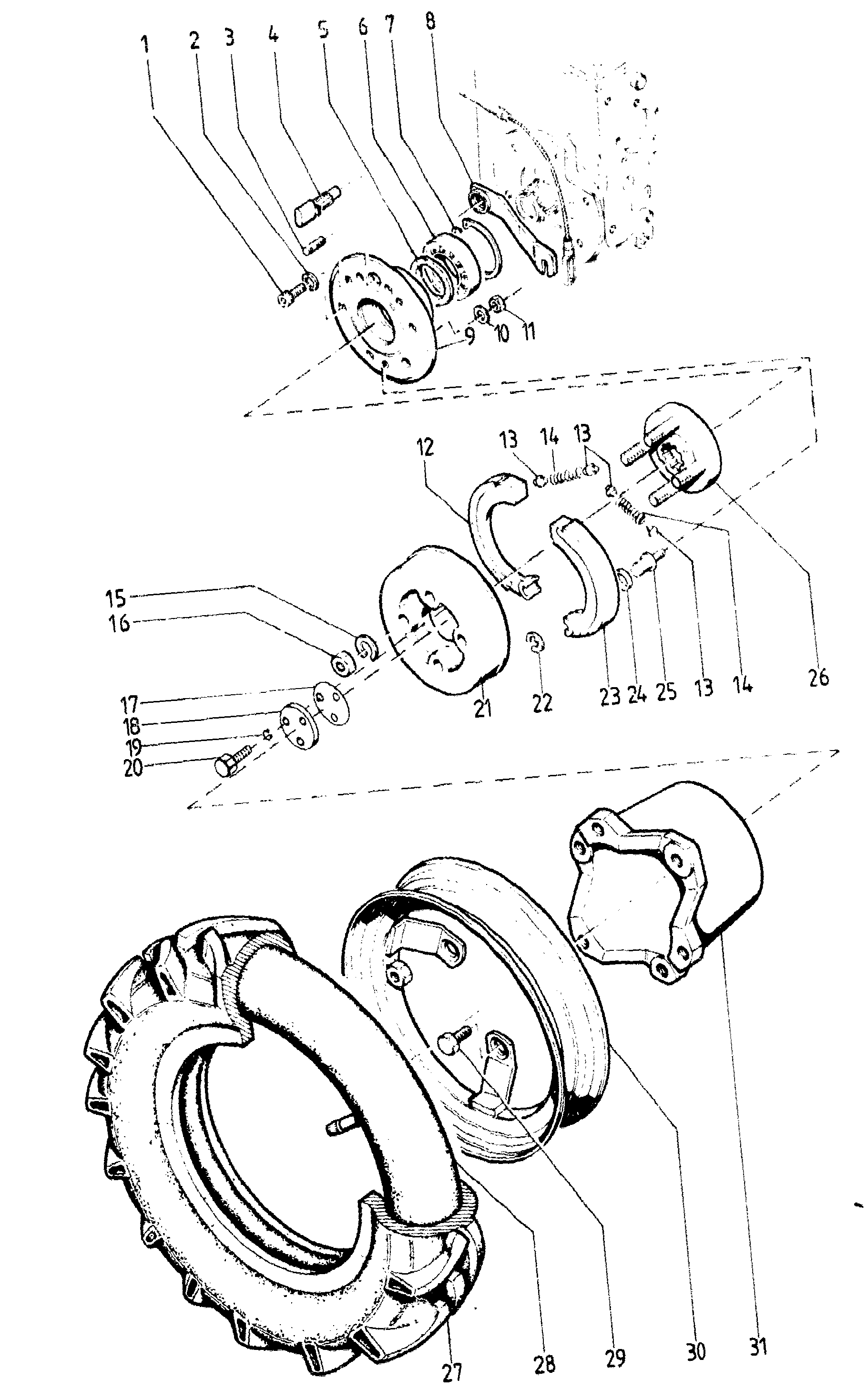 Folgende Ersatzteile für Agria # Einachser # agria 2700 # Art-Nr 2700781 | agria 2700 DIFF EA D 9KW | > 27001309 # Radgetriebe # Radflansch, Bremsen (1) können Sie hier bestellen: