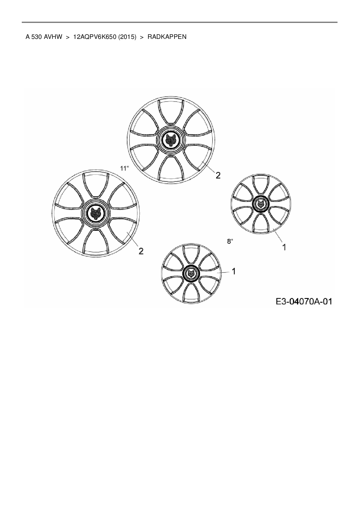 Ersatzteile für Motormäher mit Antrieb Wolf-Garten A 530 AVHW aus der Zeichnung Radkappen: