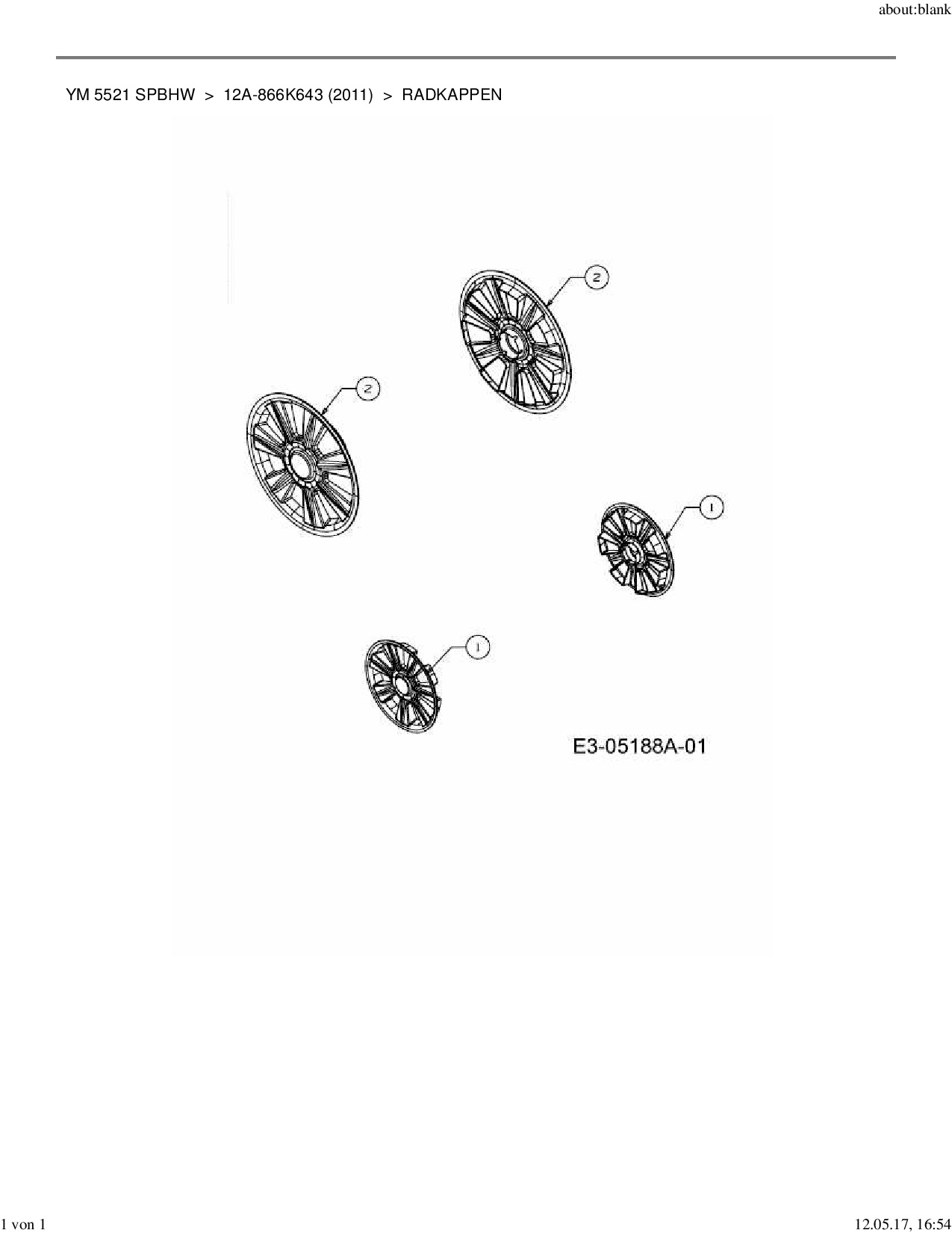 Ersatzteile für Motormäher mit Antrieb Yard-Man YM 5521 SPBHW aus der Zeichnung Radkappen: