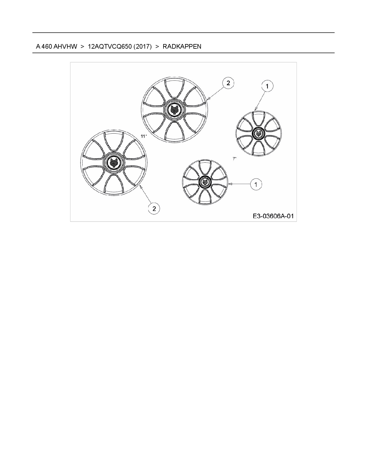 Ersatzteile für Motormäher mit Antrieb Wolf-Garten A 460 AHVHW aus der Zeichnung Radkappen: