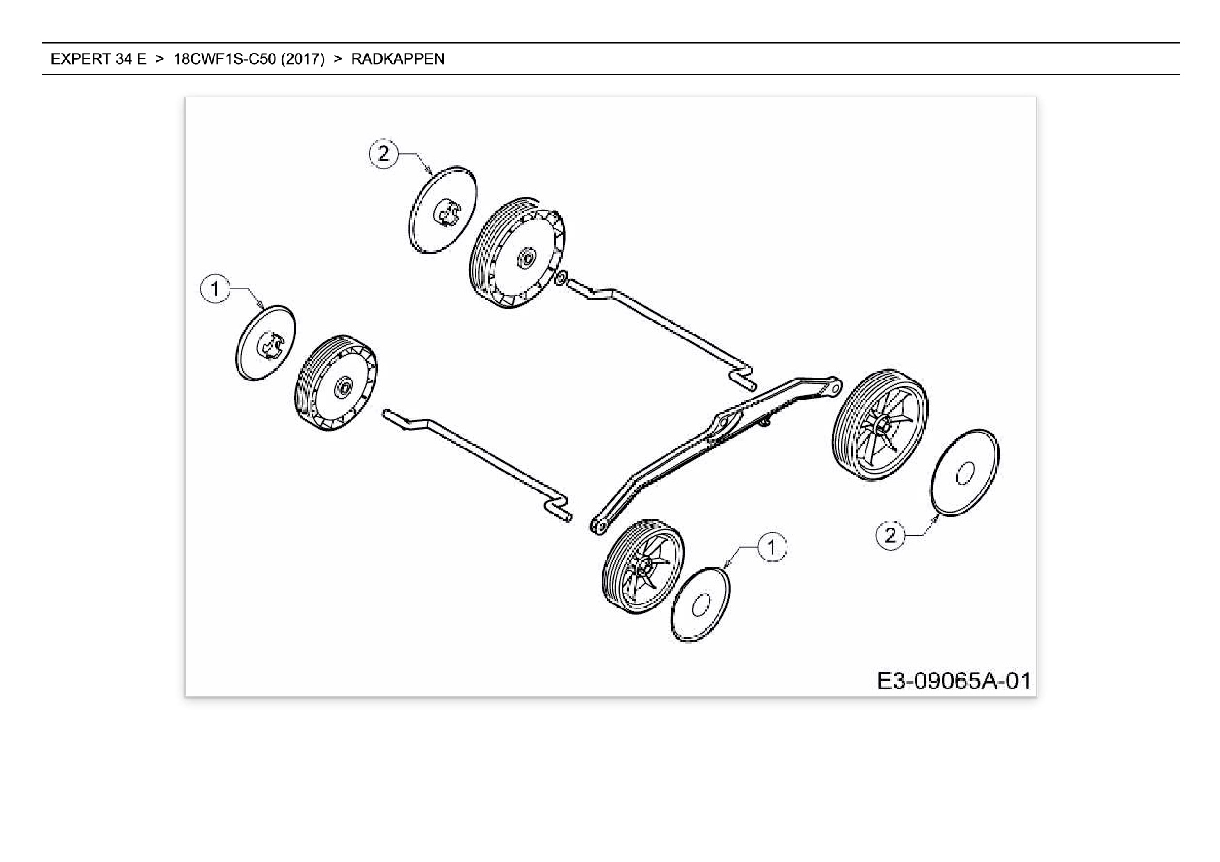 Ersatzteile für Elektromäher Wolf-Garten Expert EXPERT 34 E aus der Zeichnung Radkappen: